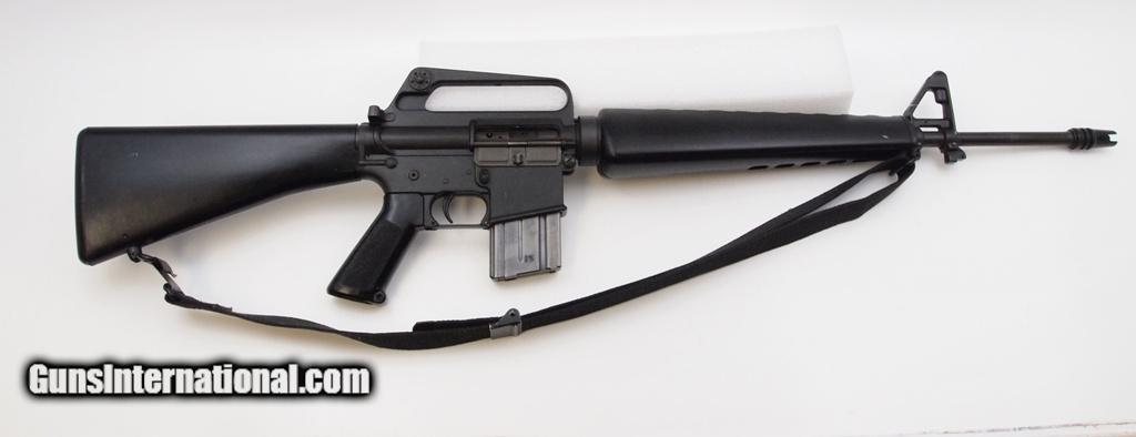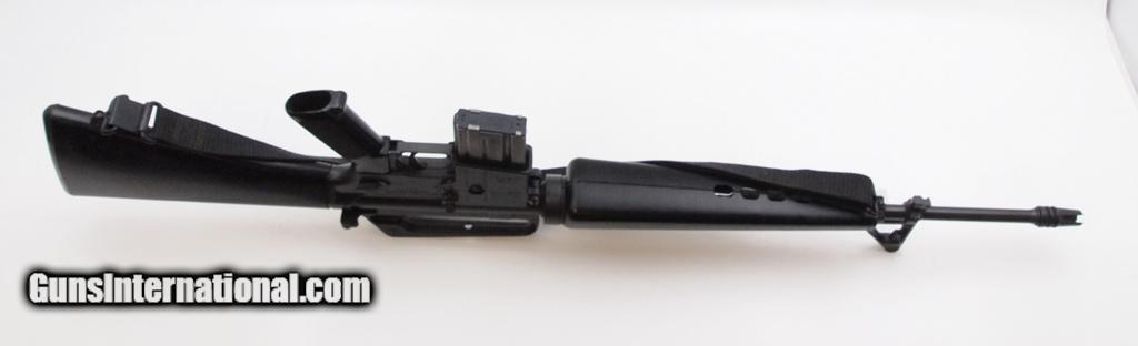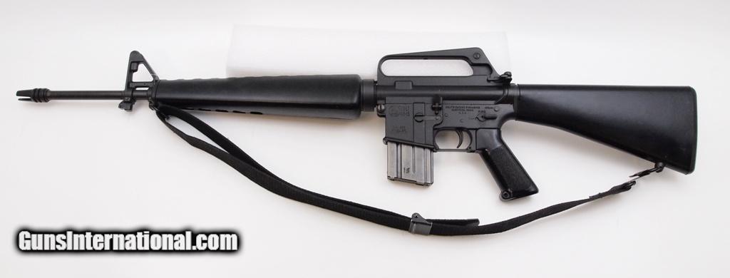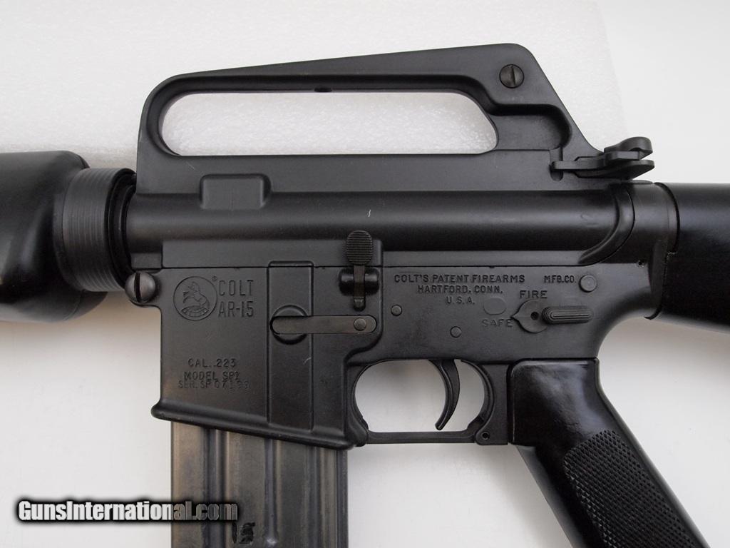 Description: Colt SP1 AR-15 MFG 1966 .223, 20" bbl, bright shiny bbl, strong rifling, black finish, adjustable rear peep sight, post in military wings front sight, Flash hider, bayonet mount, integral carrying handle, synthetic stock - fore end - checkered pistol grip, and black butt plate. This rifle is in excellent condition with very light handling marks. Add 3% for Credit Card Shipping $30.00 SOLD |