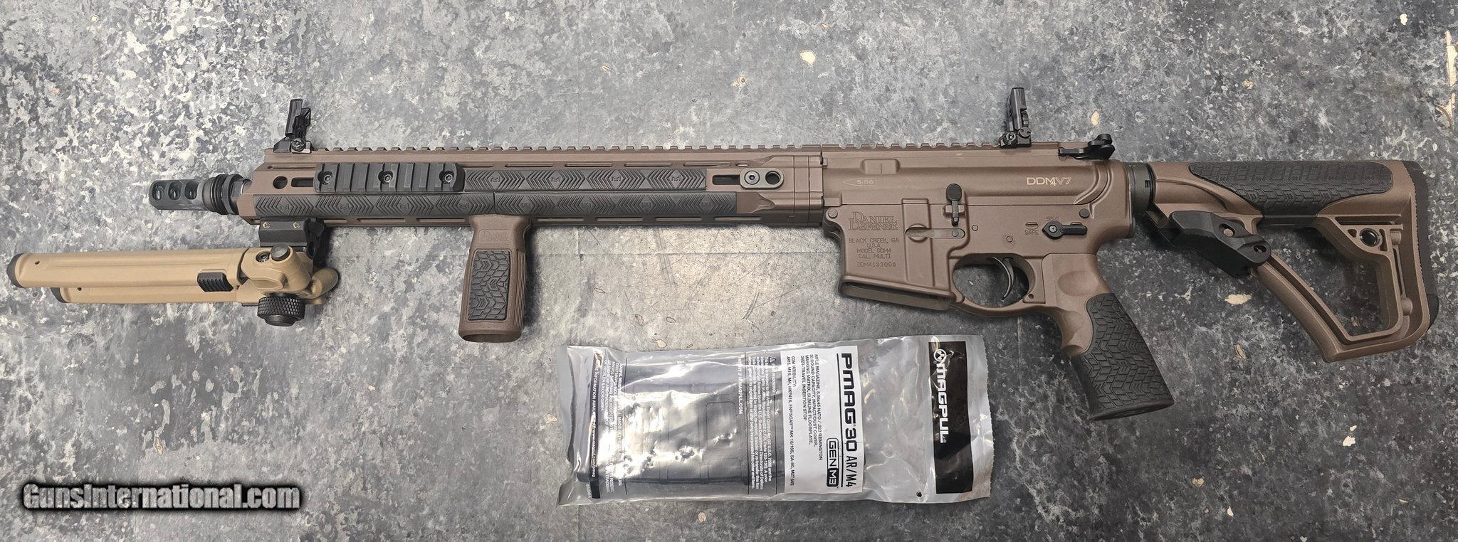 Description: Guns Listing ID: 590188 Pre-Owned Daniel Defense DDM4 V7 556 16\" w/ Magpul Bipod, 1x30rd mag and Silencerco ASR muzzle device Manufacturer: DANIEL DEFENSE Model: DDM4 V7 MIL SPEC+ Caliber Info: 5.56X45MM NATO Condition: Used - Non-Certified Barrels: 16" BARREL Finish: COYOTE BROWN Weight: 6.2 LBS. Price: $1,699.99 Contact Seller |