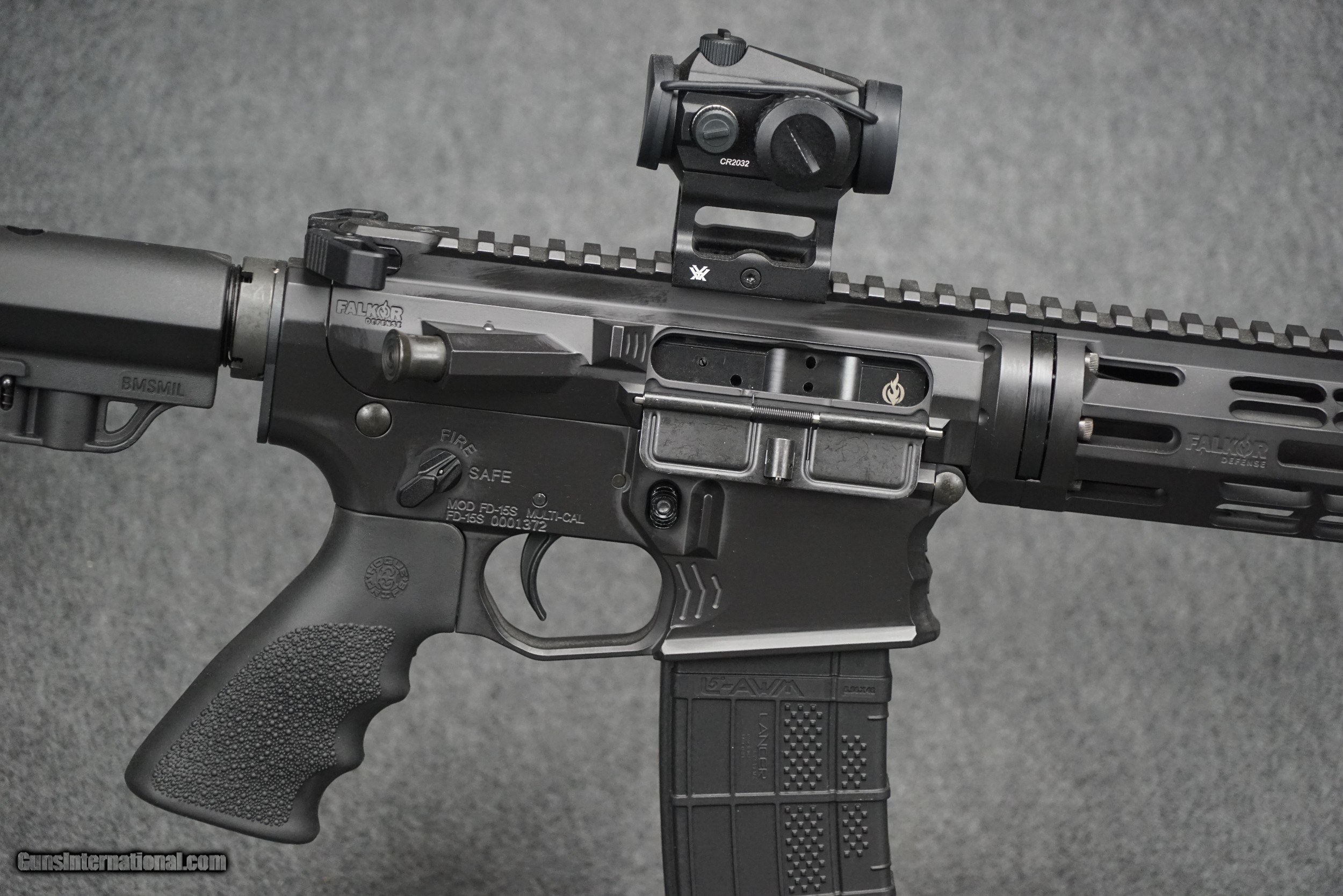 Description: FALKOR Defense 7075 T6 billet Aluminum receiver set, milspec style controls 13.5” OAL Transition Handguard 16”, Midlength gas, 1:8 Twist, .223 Wylde BA Hanson Barrel Dracos Ace Muzzle Brake FALKOR Defense High Pressure 5.56 Black Nitride Bolt Carrier Group FALKOR Defense MACH 15 Charging Handle MFT Battlelink Minimalist Stock 6 position Milspec Receiver Extension H2 Carbine Buffer Enhanced Milspec Nickel Boron Trigger Group Radian Weapons Talon Ambidextrous Safety Selector Hogue Pistol Grip Weight: 6.35lbs (unloaded, w/o magazine) Length: 33.5in (stock collapsed) Comes with Vortex Crossfire Red Dot SOLD Rifle Caliber: 5.56x45mm NATO Manufacturer: Falkor Defense Model: Standard Barrel Length: 16 Condition: BRAND NEW |