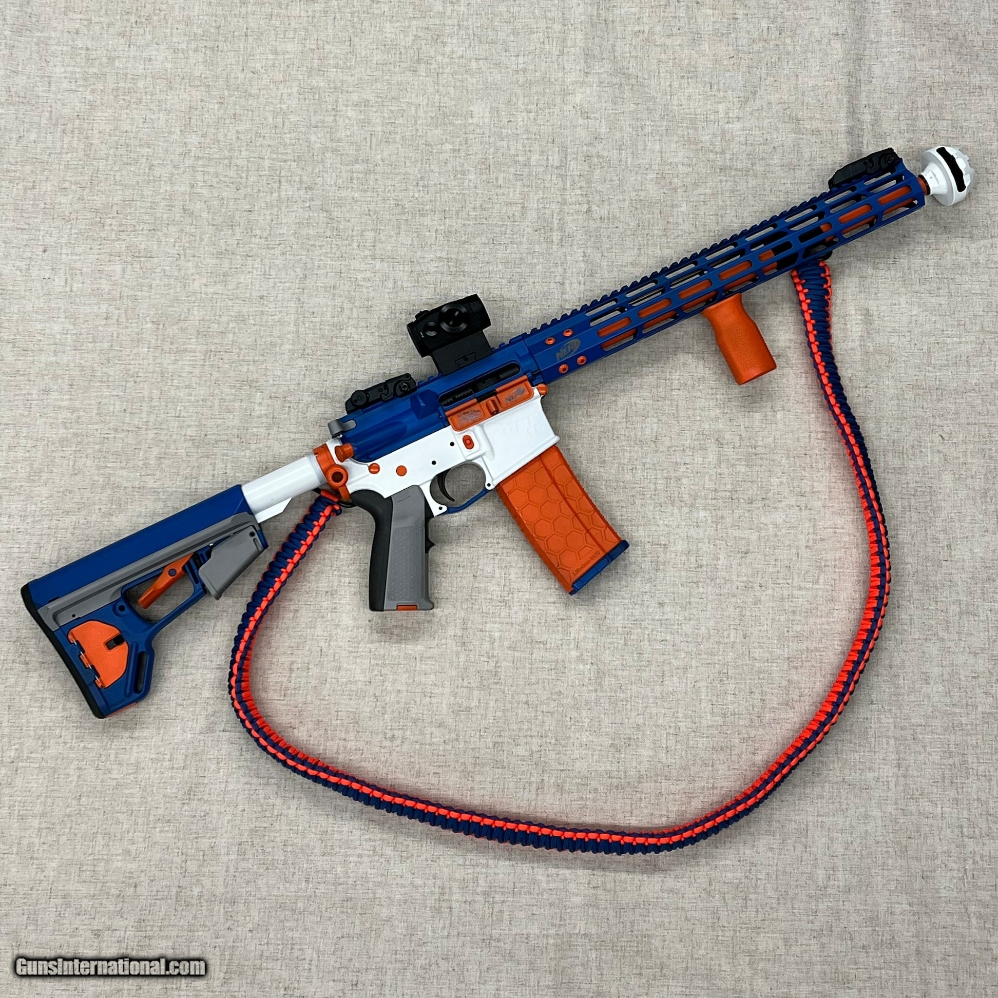 Description: Guns Listing ID: 309327 CUSTOM \"NERF\" CERAKOTE JOB. FEATURES A STRIKE INDUSTRIES COOKIE CUTTER MUZZLE DEVICE, SIG ROMEO5 OPTICS, MAGPUL BACKUP SIGHTS, AND A CUSTOM \"NERF\" INSPIRED PARACORD SLING. SOLD Manufacturer: GOOD TIME OUTDOORS INC. Model: CORE 15 cxv Caliber Info: 5.56X45MM NATO Condition: Used - Non-Certified Barrels: 16 BARREL Action: SEMI AUTOMATIC Finish: CUSTOM CERAKOTE Weight: not specified |