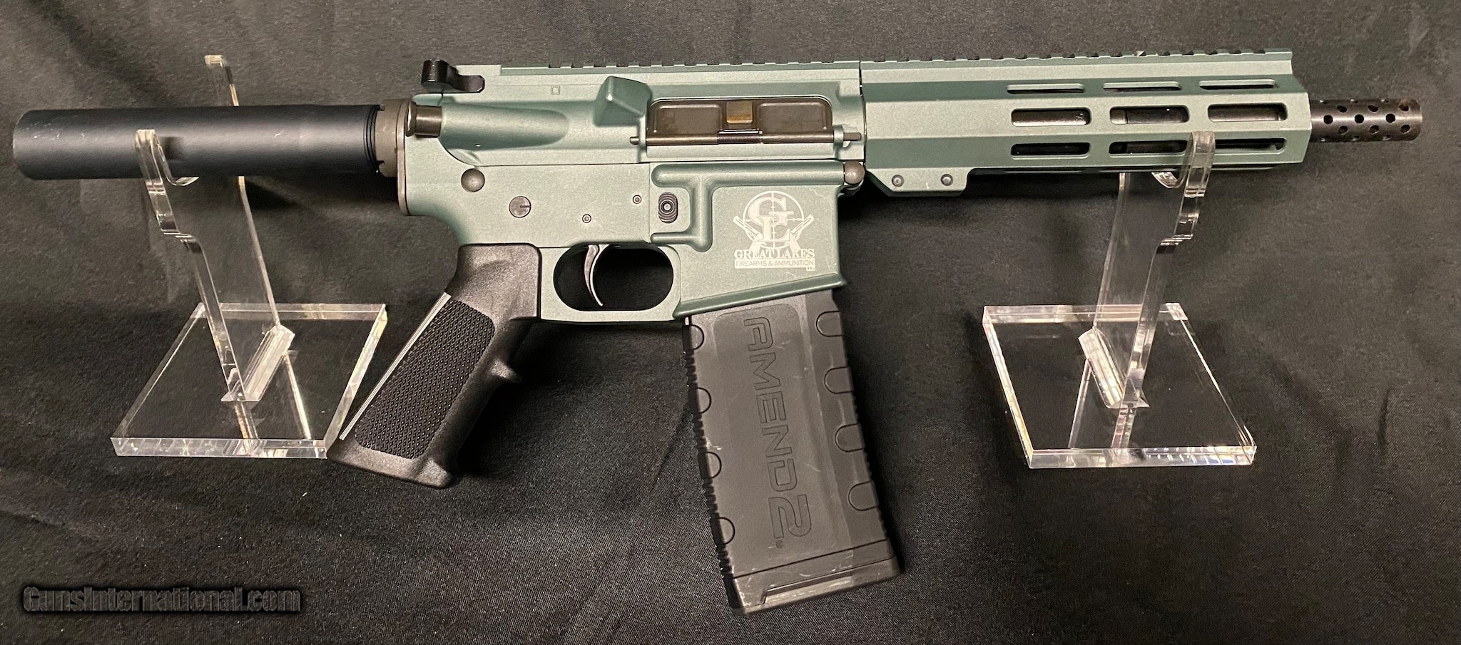 Description: Guns Listing ID: 531678 NEW IN BOX Action: Semi-Automatic Ambidextrous Safety: No Barrel: 7.5 inch, 1:8 Twist, Heavy Barrel (HBAR) – Either 416R SS or 4150 CRMOV Nitride, 1/2 x 28 threads Brace: Not included. Comes with pistol buffer tube ONLY. Caliber: .223 Wylde (Shoots both .223 REM and 5.56 NATO) Feed Ramps: M4 Finish: Cerakote Frame Material: Aluminum 7075 Gas System: 0.750 Gas Block (Black Oxide) and Pistol Gas Tube Grip: Mil-spec, Polymer Handguard: 7.125\" Aluminum 6061 – Full picatinny rail Magazine Capacity: 30 Round Mags included: 1 Muzzle Brake: Included - Designed to be 6 degrees forward, wrench tightened w/o Loctite Sights: None Trigger: Milspec, 5.5-6 lb pull Upper Receiver: 7075 Overall Length: 23.5” Weight: 5.0 lbs SOLD Manufacturer: GREAT LAKES FIREARMS Model: GL-15 Caliber Info: .223 WYLDE Condition: Used - Non-Certified Barrels: 7.5 BARREL Finish: OD GREEN |