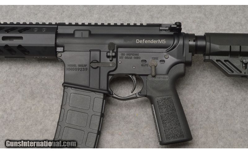 Description: This HM Defense Model HM15F Defender M5 semi auto rifle in 5.56 X 45MM Nato/.223 Remington is NIB(new in box). This Defender M5 comes with a M4 profile flat top picatinny rail, forged aluminum lower receiver, mil-spec trigger, Type III Class II hardcoat anodized black finish, Magpul 30 round MOE Gen2 detachable magazine, chromoly monoblock 16" barrel with integral gas block, flash hider, decal and factory cardboard box. 5.56x45mm NATO SOLD Metal Condition: New Bore Condition: New Barrels: Black Anodized Chromoly 16 Triggers: Mil-Spec Stock Dimensions: LOP 11" to 14" Height 7 1/2" Length 33 1/2" to 36 3/4 Fore End: 10 1/2" Black Anodized Aluminum Butt Pad: Factory HM Black 6 Position with 7/16" Textured Rubber Pad Weight: 6 Lbs. 12 Oz. Sights: None - M4 Profile Flat Top Picatinny Rail Item Location: West Chester, OH |