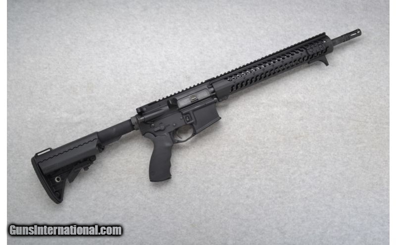 Description: SOLD Caliber Info: 5.56 NATO Chambers: Detachable magazine. Metal Condition: Excellent. A couple minor handling marks. Bore Condition: Excellent. Barrels: 16 inch matte black with muzzle break. 1/7 twist. Voodoo Barrel. Stock: Telescoping / Adjustable black polymer buttstock. Textured black rubber full pistol grip with finger grooves. Stock Dimensions: LOP 13 5/8 inches. Fore End: Vented black metal tube. Short right side accessory rail. Butt Pad: VLTOR textured black rubber. Weight: 6 lbs. 4 oz. Sights: Full top accessory rail. No iron sights. Extras: Soft Case Item Location: Richfield, WI |