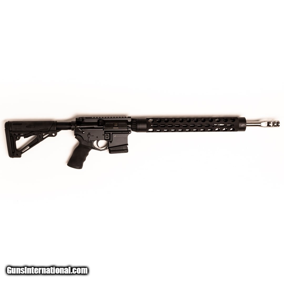 Description: Guns Listing ID: 608573 The JP Enterprises JP-15 is a high-end AR-15 with a 5.56 NATO upper receiver, allowing for both .223 and 5.56 to be shot with no worries about pressure differences. This rifle is designed for performance and features a supermatch barrel and is well set up for competition shooting, offering smooth, low recoil shooting. This rifle has their new low mass bolt and a mil-spec buffer. SOLD Manufacturer: JP ENTERPRISES Model: JP-15 Caliber Info: 5.56X45MM NATO Condition: Used - Certified Barrels: 18 barrel Finish: TWO TONE BLACK AND STAINLESS |