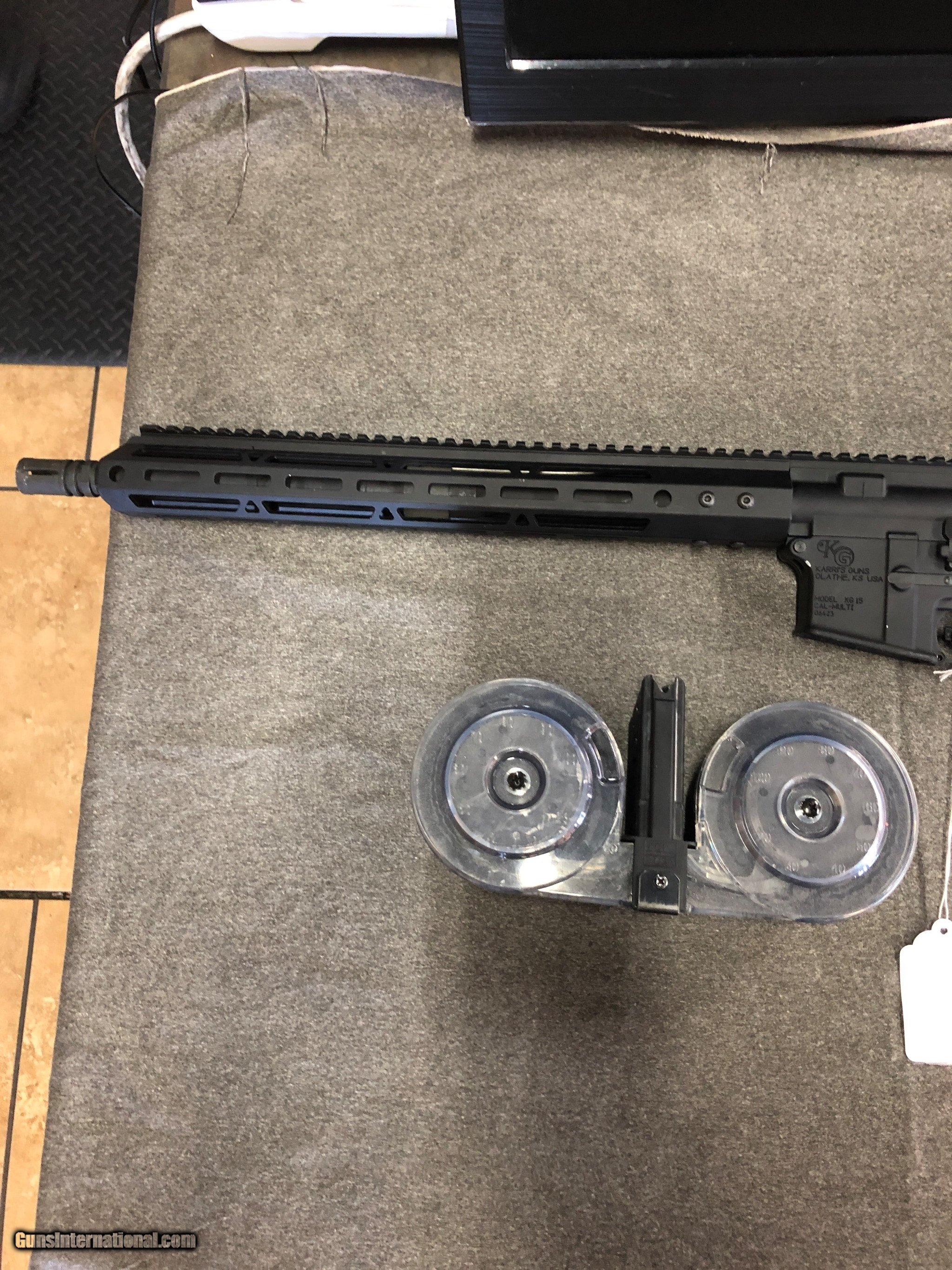Description: Guns Listing ID: 524158 Karris guns KG 15 rifle 5.56 nato caliber with 100 round drum m16/m4 I’m excellent condition. SOLD Manufacturer: KARRI‚‚S GUN Model: KG-15 AR Caliber Info: 5.56 NATO Condition: Used - Non-Certified Barrels: 16 BARREL Finish: BLACK |