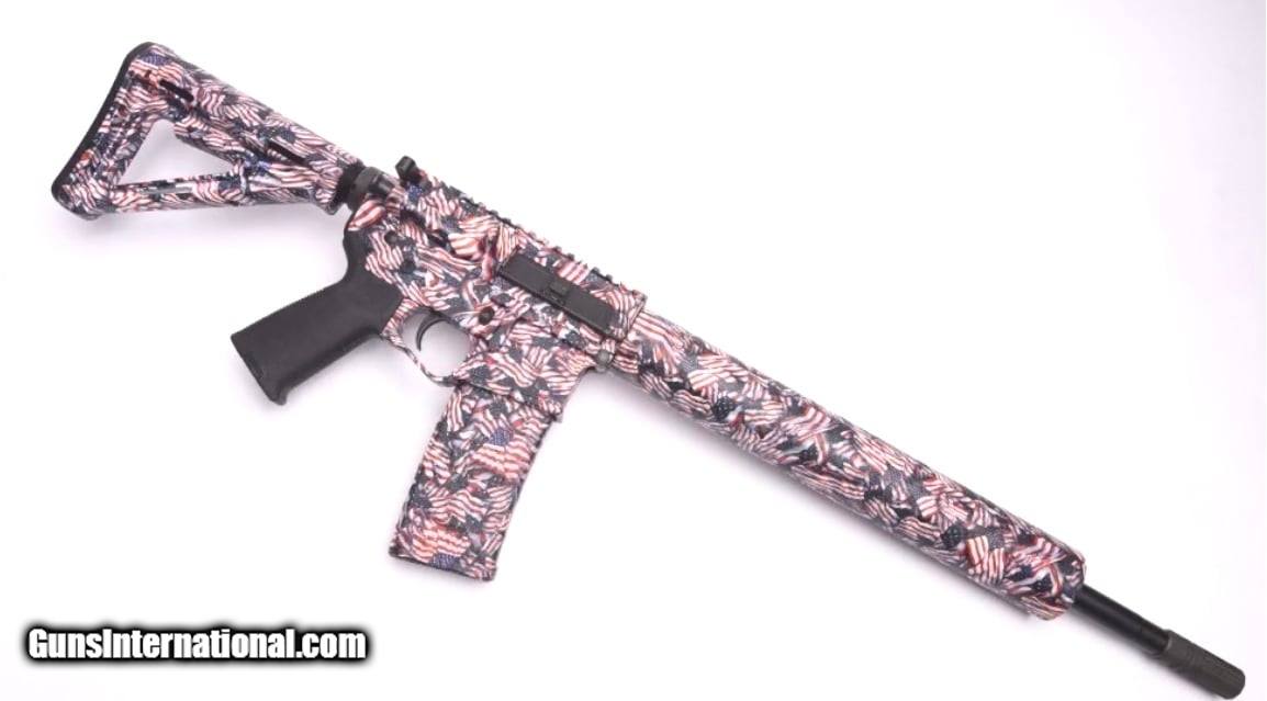 Description: Guns Listing ID: 544110 New Frontier Armory NFG-15 American Flag Hydro Dipped AR15 rifle chambered in 223/556 with a 16\" barrel. This rifle features a Magpul buttstock, Magpul pistol grip and a free floated handguard. The bolt Carrier group is an Aero Precision. The Rifle and American Flag finish are in good shape as the pictures show. Make: New Frontier Armory Model: NFG-15 Gauge/Caliber: 5.56MM Action Type: Semi Auto Barrel Length: 16\" Sights / Optics: N/A Stock Configuration & Condition: Magpul Pistol Grip and Buttstock are in Good Condition Type of Finish & Condition: American Flag Hydro Dip Mechanical Condition: Functions as it Should Bore Condition: Shiny Like New Box, Paperwork & Accessories: No Box or Paperwork Our Assessment: The New Frontier Armory NFG-15 Rifle is in good shape as the pictures show. SOLD Manufacturer: NEW FRONTIER ARMORY Model: NF-15 Caliber Info: 5.56X45MM NATO Condition: Used - Non-Certified Barrels: 16 BARREL Action: SEMI AUTOMATIC Finish: AMERICAN FLAG |
