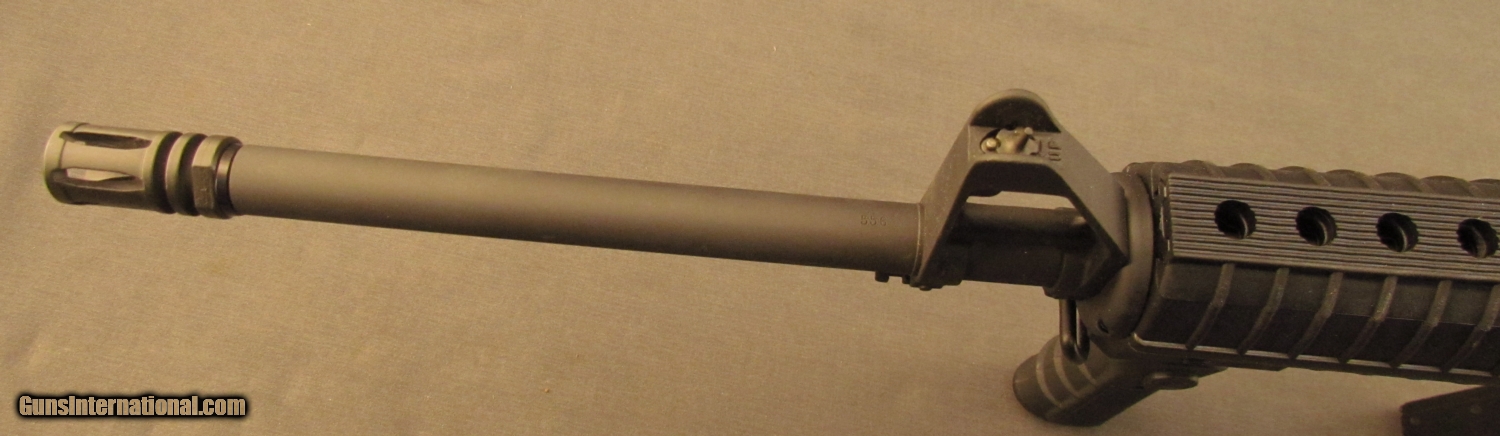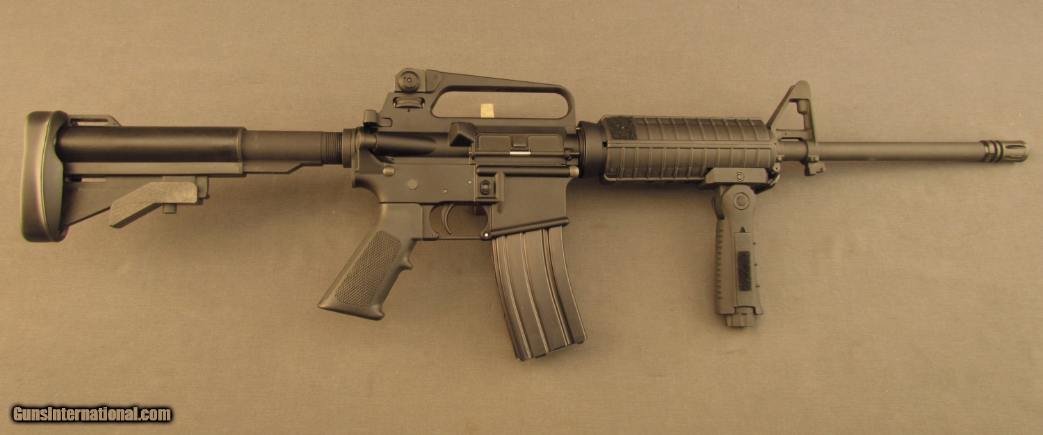 Description: Serial #SM 2309, 5.56mm NATO (.223 Rem.), 18” barrel with an excellent, bright bore. This AR-15 style carbine is in virtually new condition retaining practically all of the original black finish with excellent black plastic A2 pistol grip, rail-equipped handguards, and six-position telescoping buttstock. The fit is solid with tight tolerances between the upper and lower assemblies and both an A2 style rear sight and birdcage flash suppressor are fitted. The rifle comes complete with a single commercial 30 round magazine, rubber slip-on recoil pad, and a folding foregrip is installed. This is an excellent and nearly new AR-15 carbine. FFL SOLD Manufacturer: Olympic Arms Model: AR-15 Serial Number: SM2309 Caliber Info: .223 Gauge Info: .223 |