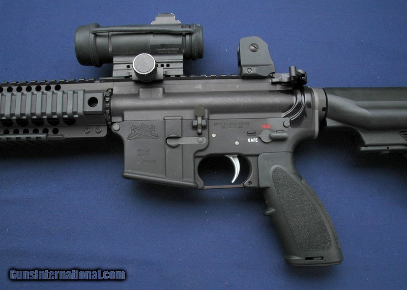 Description: This one was built on a Palmetto PA-15 lower receiver. Ambi-safety, upgrade enhanced coated trigger group, HK E1 buttstock. The upper is a Colt, 16" free float barrel including the pinned/welded BCE flash hider. Midwest industries railed fore end, rubber rail covers plus a couple from Knights. Stubby vertical fore grip, Daniels Defense front and rear rail mounted sights plus an old school Aimpoint Comp M4 red dot that works just fine. Good to go. In order to protect your investment, all long guns over $500 must be shipped in a hard case. Minimum shipping at this level is $55 and includes the hard case. Shipping cost could increase depending on value or weight of the firearm. For long guns less than $500, we still recommend the purchase of a hard case, again to protect your investment. These numbers are for shipping to the lower 48. There is also a 3% surcharge for customers using a credit card on internet sales. If you choose to pay with a personal check, we will hold the item for up to 10 days to ensure that it clears. We will hold an item on your word for 5 days. Thank you! SOLD |