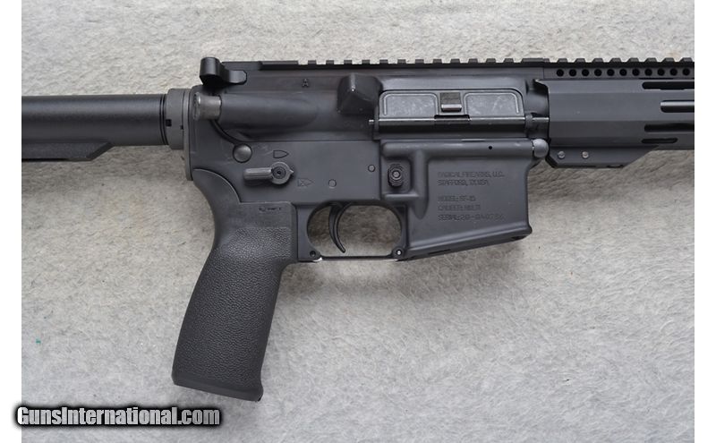 Description: This Radical Firearms Model RF-15 is a right hand semi-auto tactical rifle in 5.56 NATO Cal. It has a 16 inch barrel plus a muzzle device with a 1/7 twist. No sights are present. It has a full length top accessory rail. The butt stock is adjustable/telescoping. The full pistol grip is a textured black polymer. The forearm is a vented metal alloy tube. 5.56x45MM NATO SOLD Chambers: Semi-Auto 30 round magazine. Metal Condition: Excellent. Bore Condition: Excellent. Barrels: 16 inch barrel plus the muzzle device. 1/7 Twist. Stock Dimensions: LOP 14 inches full open. Fore End: Vented metal alloy tube. Butt Pad: Ribbed black rubber. Weight: 6 lb. 8 oz. Sights: No sights present. Item Location: Richfield, WI |