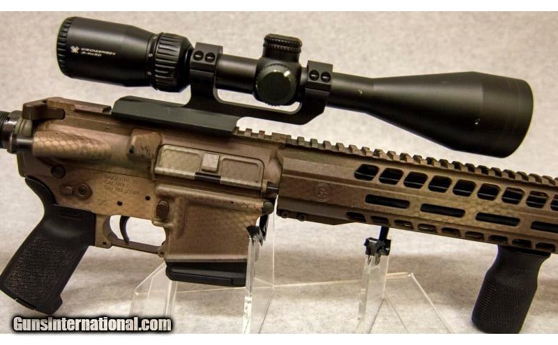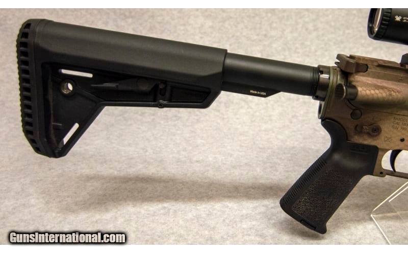 Description: Radical Firearms RF-15, chambered in .450 Bushmaster. Features include: stainless rifle length (20 in. barrel) gas system, 20 in. HBAR/"Big Bore" profile CM barrel, Panzer muzzle brake, forged receivers, MOE SL adjustable stock w/rubber buttpad, 15 in. free float MHR (M-LOK Hybrid Rail), low profile gas block, quad Picatinny rails on the forend, Mil-Spec lower parts kit, black anodized finish. Rifle has been hydra dipped with a snakeskin like finish .450 Bushmaster SOLD Chambers: .450 Bushmaster Metal Condition: Excellent Bore Condition: Excellent Barrels: 20' Stock Dimensions: 14.5' Butt Pad: Rubber Sights: Vortex Crossfire II 3-9X50 Item Location: Fort Mill, SC |
