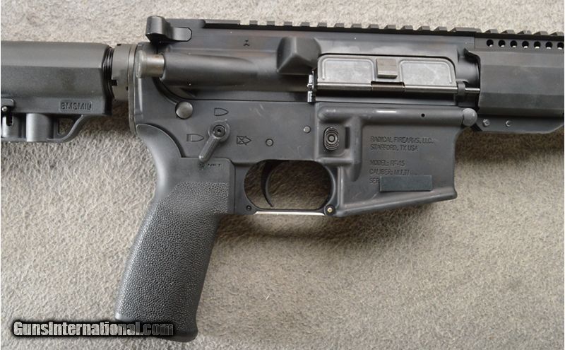 Description: The Radical Firearms AR15 Rifle is a lightweight, semi-automatic firearm. Features include a free float rail system, forged upper and lower receiver. The action is gas operated with the bolt closed. The adjustable buttstock a 6-position collapsible buttstock. Lightweight at only 6 Lbs. 3 Oz. as pictured. The Radical Firearms 16" Socom 5.56mm AR rifle uses MIL-STD Upper and lower receivers along with our 15" FCR free float rail system for increased accuracy, keeping your hands cool, and giving you plenty of room for accessories. Regardless if it's your first or fiftieth, a Radical Firearms AR rifle will not disappoint! These are stock pictures but all are the same model and configuration. 5.56x45MM NATO SOLD Chambers: Semi-Auto 30 round mag. Metal Condition: New in the box. Wood Condition: New in the box. Barrels: "16"" 4140 Chrome Moly Vanadium, blue with an A2 suppressor. 1-7 twist. Triggers: Single. Stock Dimensions: 10 1/2"-13 3/4" adjustable LOP. Fore End: 15" FCR free float rail system for increased accuracy. Butt Pad: MFT Minimalist stock with an adjustable LOP with a black rubber butt pad and a pistol grip. Weight: 6 Lbs. 4 Oz. Sights: 15" FCR free float rail for your sights. Item Location: Owatonna, MN |
