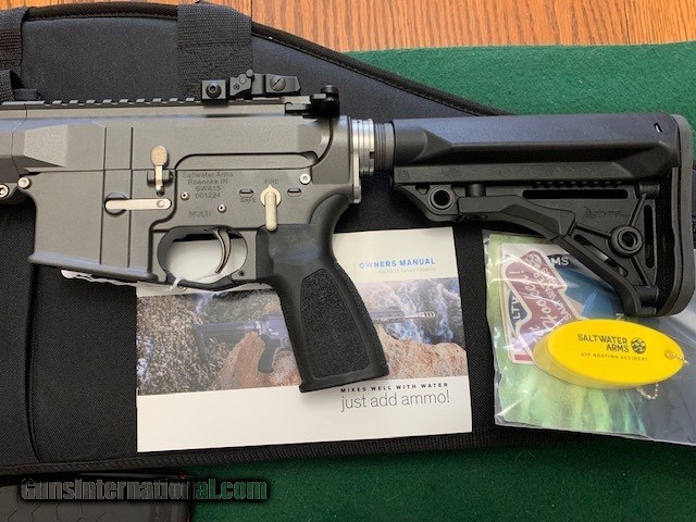 SALTWATER ARMS AR-15; 5.56MM, 16” STAINLESS & ALLOY PARTS, FOLDING SITES ADDED, COMES WITH 4 MAG’S, OWNER MANUAL, NEW IN THE CASE