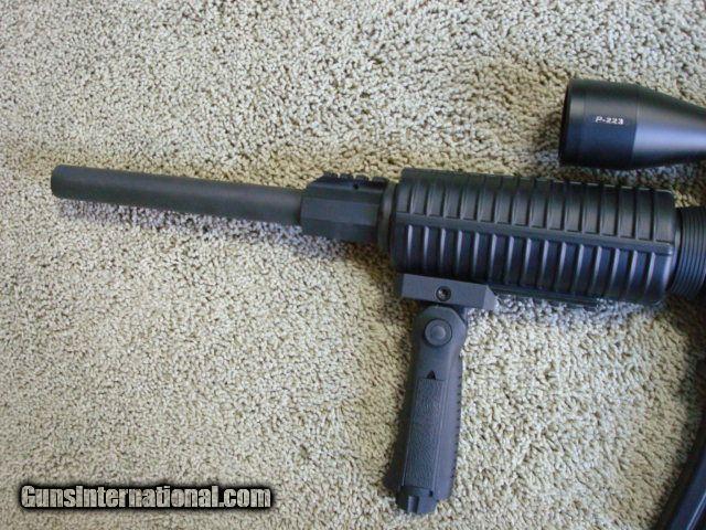 Description: This is a most excellent AR-15 Sig Sauer Model 400 lower and DPMS upper. Extremely accurate with 16 inch bull barrel 9 inch twist. Comes complete with Nikon P-223 3 to 9 power, distance compensating scope. P-series scope mount, Sig Sauer adjustable stock, adjustable forend grip, 30 round magazine (if legal in your area) and Tactical Link sling. Buyer pays only exact freight from zip code 59044. SOLD |
