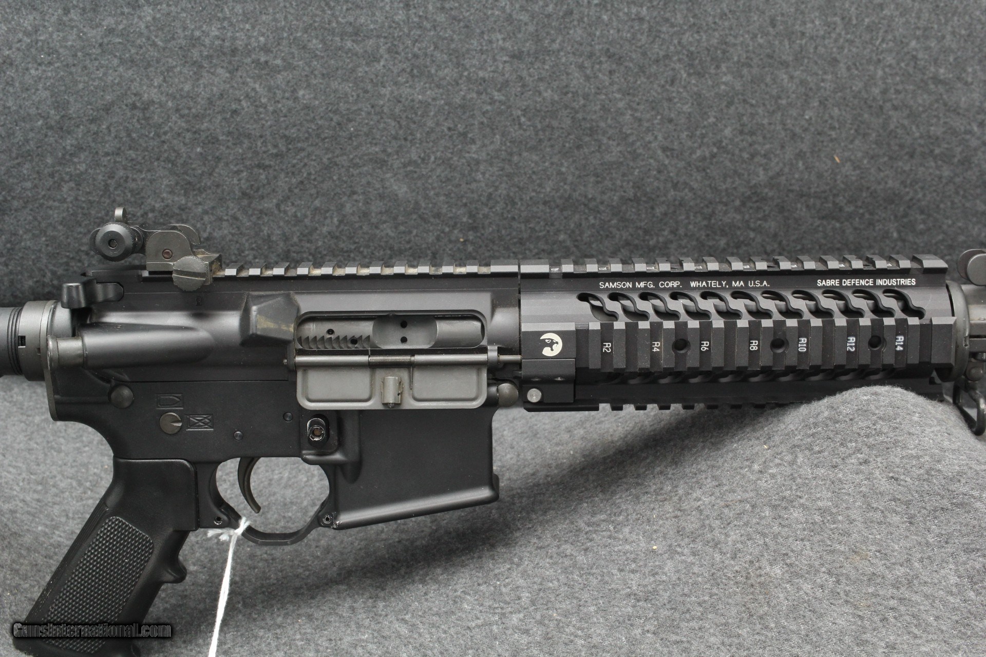 Description: 5.56mm, serial number 8121XX. 16" barrel. Samson quad rail, carbine length gas system. Yankee Hill Machine front and rear metal folding sight. Overall in very good condition, shows normal wear/use. Bullet tip mag release. 1:7 twist. Please add $40.00 for shipping and insurance. Cannot sell to Washington State residents. SOLD Rifle Caliber: 5.56x45mm NATO |