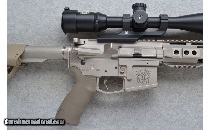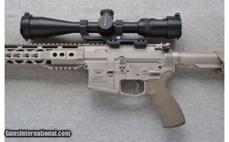 Description: This WMD Guns Model Beast is a right hand tactical rifle in 5.56 NATO Cal. It has a 16 inch barrel plus a muzzle compensator. A 1/7 Twist. It is outfitted with a Nikon M-223 4-16x42 Scope and a folding adjustable Bi-Pod. The AR style butt is adjustable / telescoping and the AR pistol grip is rubber with finger grooves. The forearm alloy tube is 8 sideed and vented. It has a high performance coating. SOLD Caliber Info: 5.56mm NATO Chambers: Semi-Auto 30 round magazine. Metal Condition: Excellent. Wood Condition: Stock is excellent. Bore Condition: Excellent. Barrels: 16 inch tungston color high performance coated plus a muzzle break. 1/7 twist. CrMov. Stock: AR style adjustable telescoping butt. AR style textured tan rubber with finger grooves full pistol grip. Stock Dimensions: LOP 13 1/2 inches. Fore End: Vented 8 sided alloy tube with Bi-Pod. Butt Pad: Ribbed black rubber. Weight: 9 lbs. 12 oz. with Scope and Bi-Pod attached. Sights: Nikon M-223 4-16x42 Scope. No iron sights. Full top Picatinny rail. Extras: Comes with a Nikon Scope and GG&G folding adjustable Bi-Pod. Item Location: Richfield, WI |