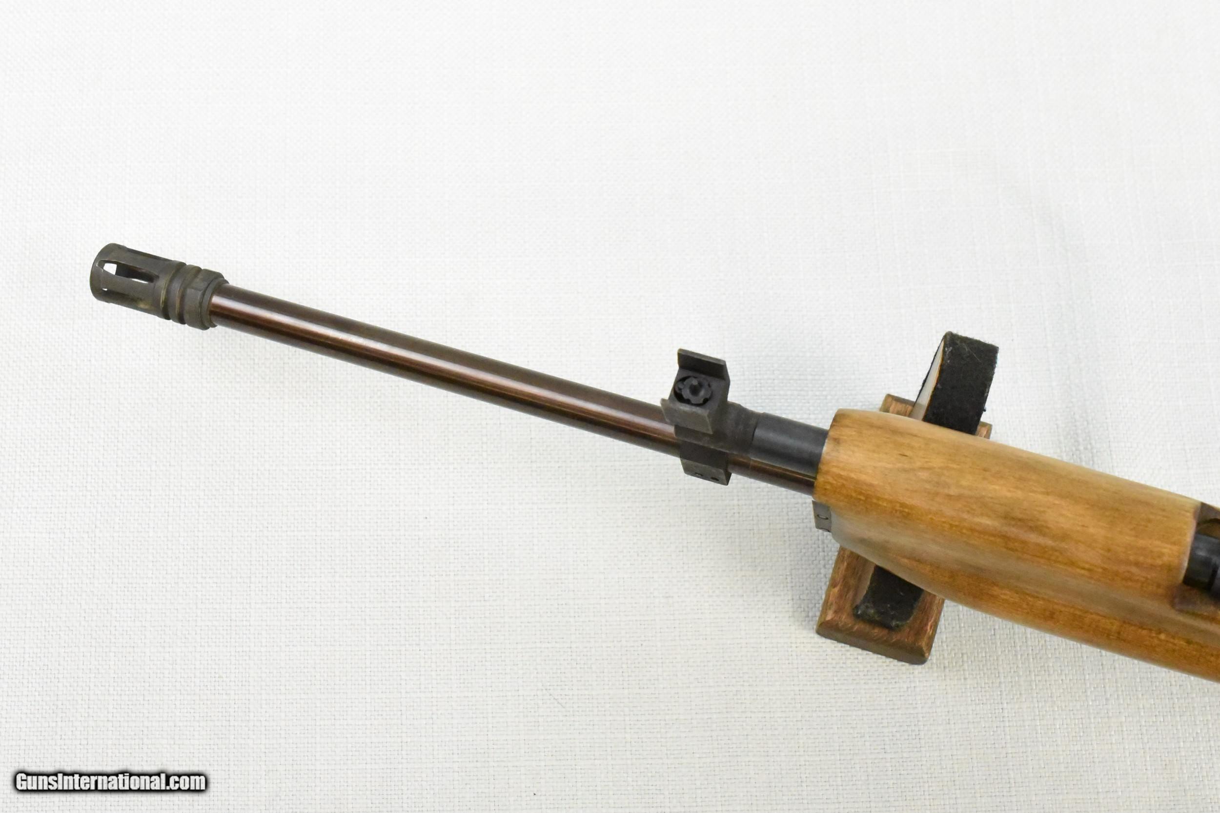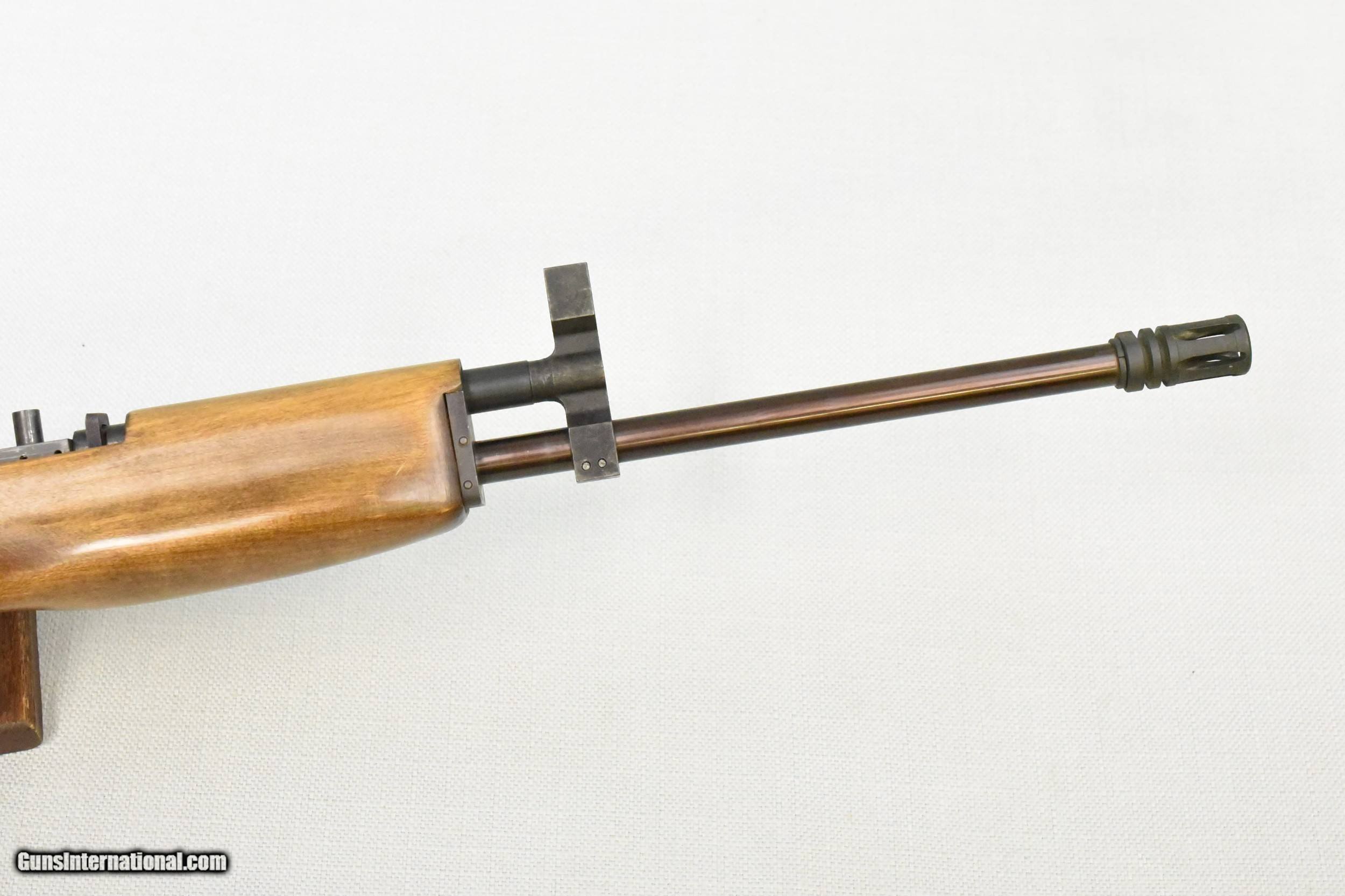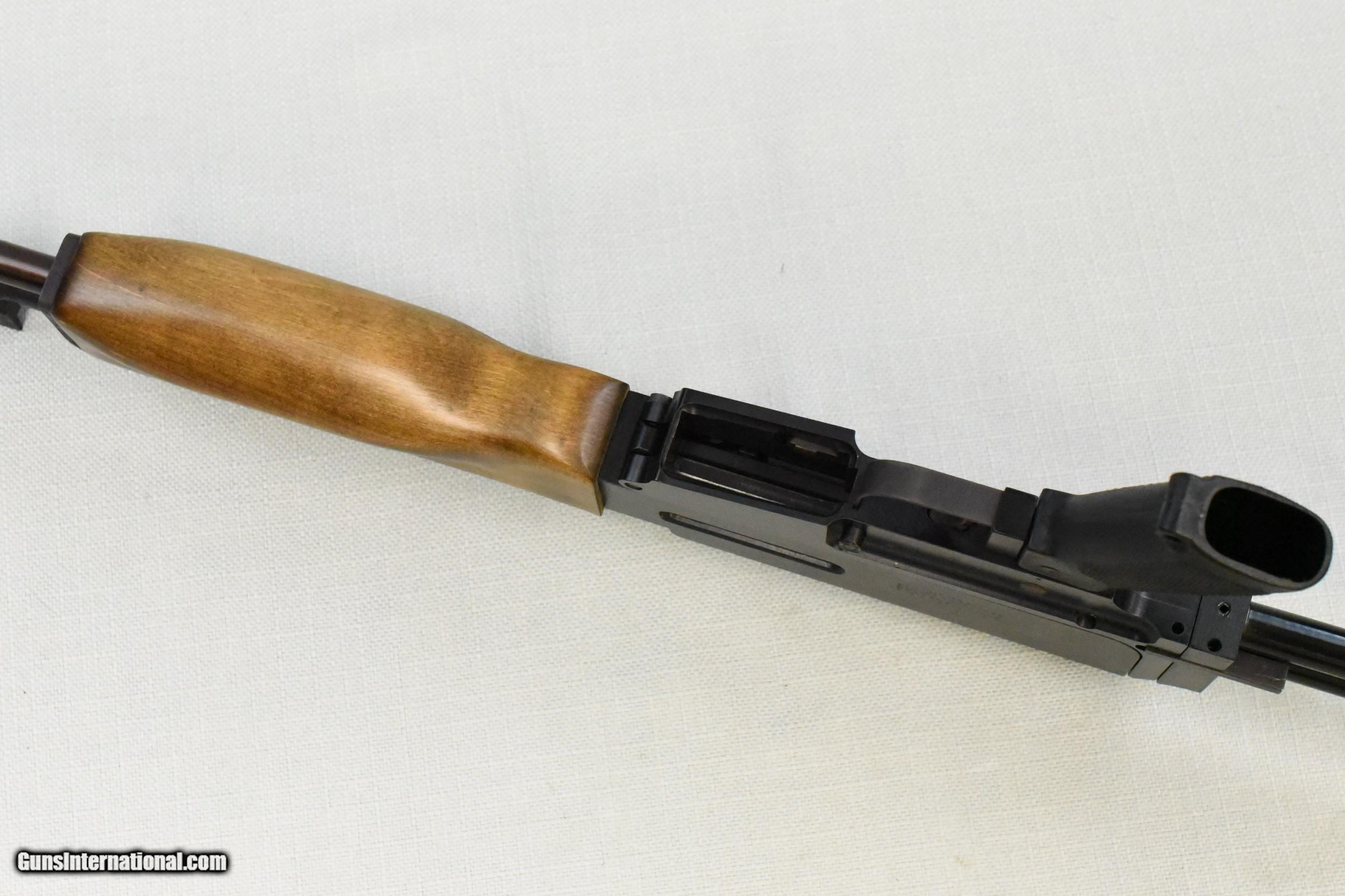 Description: Bushmaster Assault Rifle was produced by Gwinn Firearms (name was later changed to Bushmaster) from 1972 to 1988. It utilized a combination of a long stroke gas piston, similar to an AK-47 rifle, and using as many AR-15 components as possible to decrease product costs. It features adjustable front and rear sights with a folding metal stock. This Bushmaster Assault Rifle is in excellent condition, with over 98% of the original bluing. The bore is bright and features sharp visible rifling. The rubber paint coating on the metal stock is cracking around the center joint. However, the metal stock itself is solid and structurally sound. All of the mechanicals function perfectly. This is a nice example of an early Bushmaster Assault Rifle and would be an excellent addition to any firearms collection. SOLD Rifle Caliber: 5.56x45mm NATO Manufacturer: Bushmaster (Gwinn Firearms) Model: Rifle Serial Number: R74 Barrel Length: 20 Inch Condition: Excellent Metal Condition: Excellent Wood Condition: Excellent Bore Condition: Bright with Sharp Rifling Action: Semi-automatic |