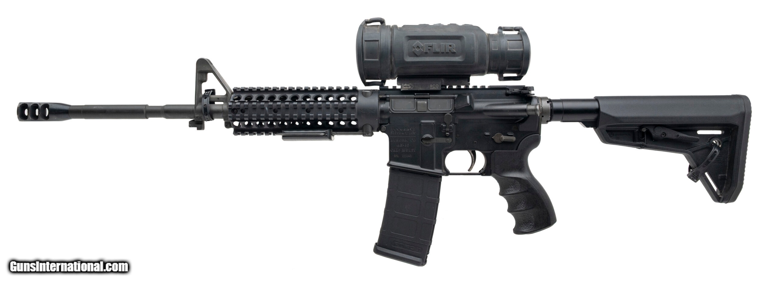 Description: "SN: CE043. Modern production, 7.62x39mm with a 16"" barrel w/3-port muzzle brake. Bore is bright with strong rifling. Semi-auto tactical left-hand rifle with a Flir 19mm thermal scope on a LaRue RCO riser. Very good condition overall, comes with 1 mag and case for FLIR optic. (CONSIGNMENT) Price: $2,000.00 Contact Seller |