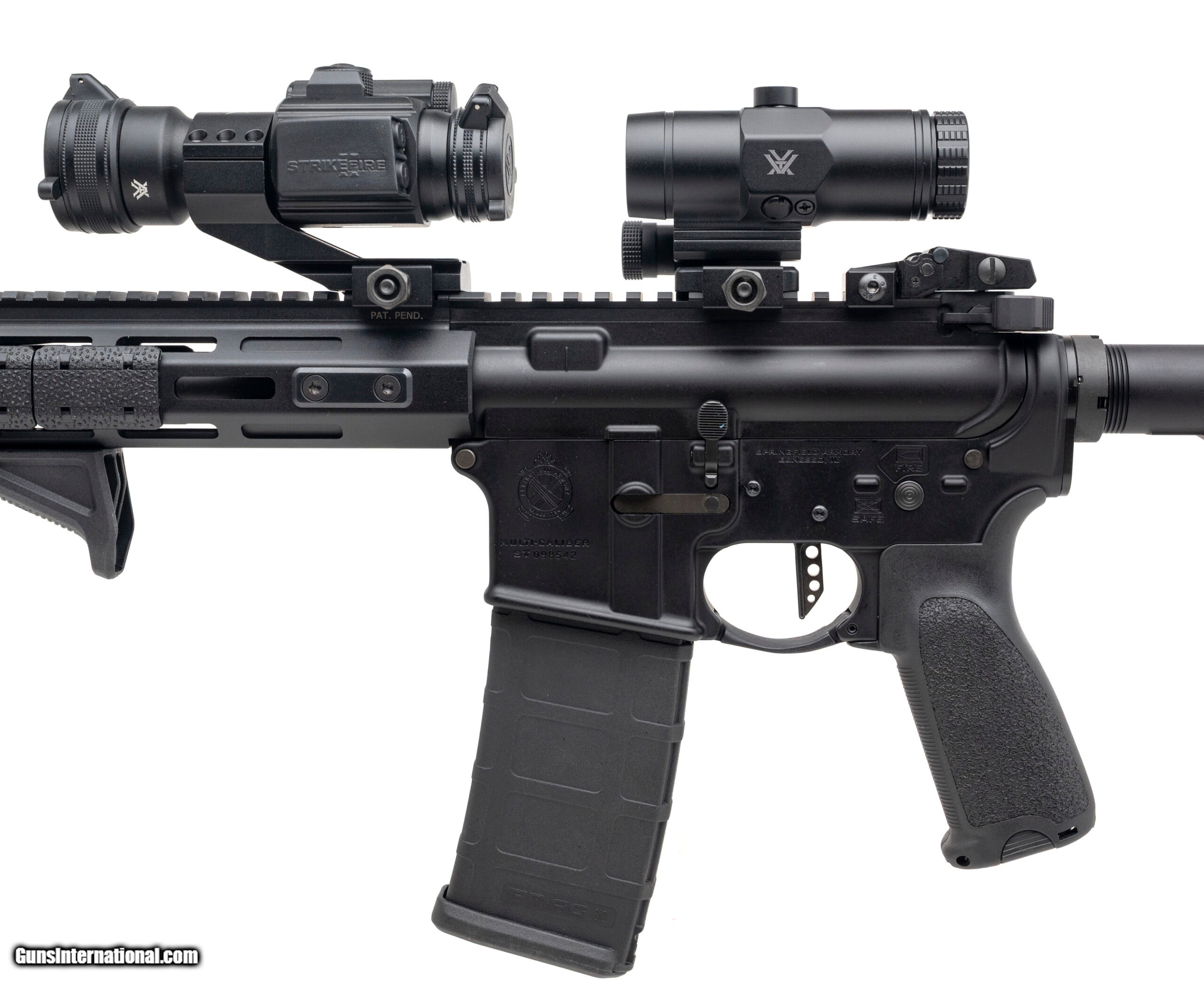 Description: "SN: BT098542. Modern production, 5.56 with a 16"" barrel. Bore is bright with strong rifling. Semi-auto tactical rifle with a Vortex Strike Fire II red dot optic & VMX-3T magnifier combo, flip-up iron sights, Magpul angled grip & rail covers, flat-faced trigger, and a one-piece picatinny accessory rail. Very good condition overall. Comes with a Plano Gun Guard case and extra magazine. Price: $1,395.00 Buy Now Contact Seller |