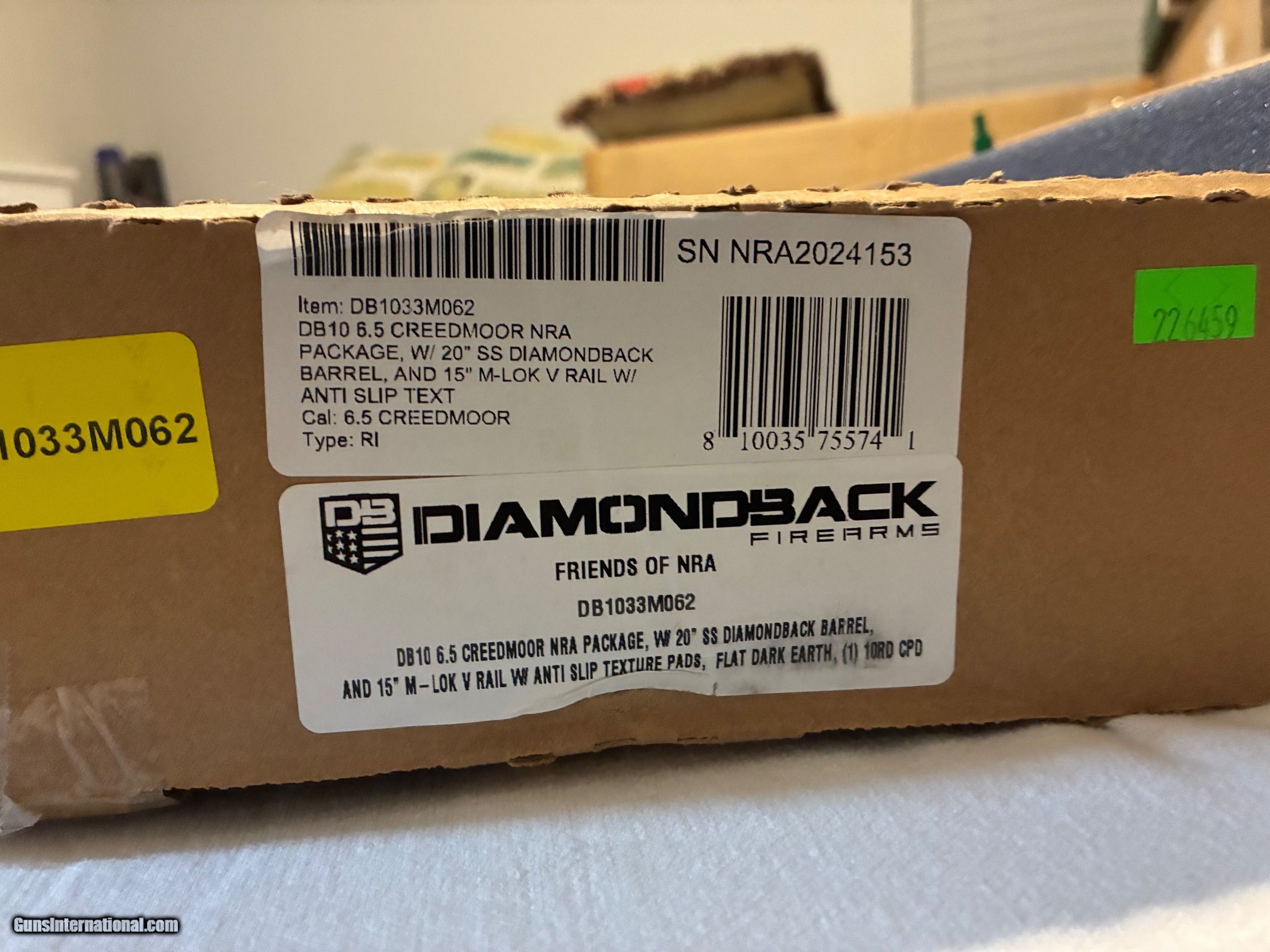 Description: This is a new in the original box rifle. The stock is collapsable and the barrel is fit for a supressor ( not included) I bought this gun in an NRA last fall to solely raise money for the NRA Friends Chapter. I do no shoot this type of rifle and do not hunt big game so I have no use for it. I would just like to r-coup my costs. Rifle Caliber: 6.5 Creedmoor Manufacturer: Diamondback Model: DB10 Barrel Length: 20 Condition: New in Box Metal Condition: Excellant Wood Condition: Excellant Bore Condition: Excellant Barrels: Blue steel Barrel Type: Round Action: semi-auto Triggers: Single Stock: Colapsable Finish: Blue Sights: Standard Factory Chokes: Multi- Factory & Tool Item Location: Florida Price: $1,300.00 Contact Seller |