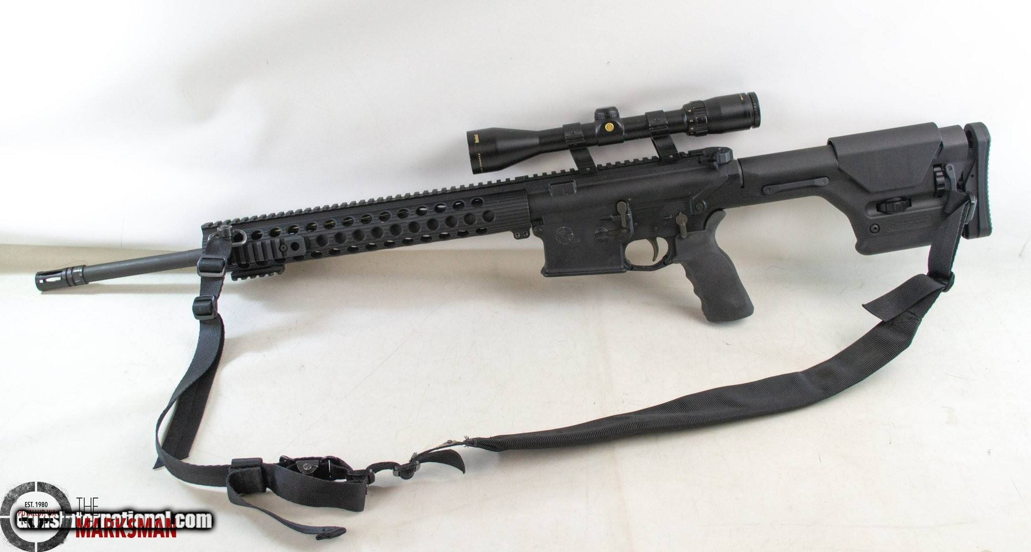 Description: Guns Listing ID: 514216 One (1) used Armalite AR-10 chambered in 7.62x51mm. This rifle has a 20 inch barrel, Magpul PRS Gen 2 stock with length of pull and cheek comb adjustment, a Rainier Arms/AXTS Raptor ambidextrous charging handle, a Troy Industries TRX 308 Extreme battlerail handguard with three attached picatinny rails, an Ergo Grip pistol grip, a Bushnell Elite 3200 Firefly 3-9x40mm scope in cantilevered scope rings and comes with a sling with a QD ring that attaches to a Viking Tactics QD sling mount, the original fixed stock, round handguard, charging handle, gas block and pistol grip, a textured Blackhawk pistol grip, a clamped mount for a laser, a Grip Pod vertical foregrip bipod and an extra gas block with an integral picatinny rail. Overall, this rifle is in great shape and has been shot only lightly. There is light wear and tear from use and some light handling marks. SOLD Manufacturer: ARMALITE Model: AR-10 Caliber Info: .308 WIN Condition: Used - Non-Certified Barrels: 20" BARREL Action: SEMI AUTOMATIC Finish: black |