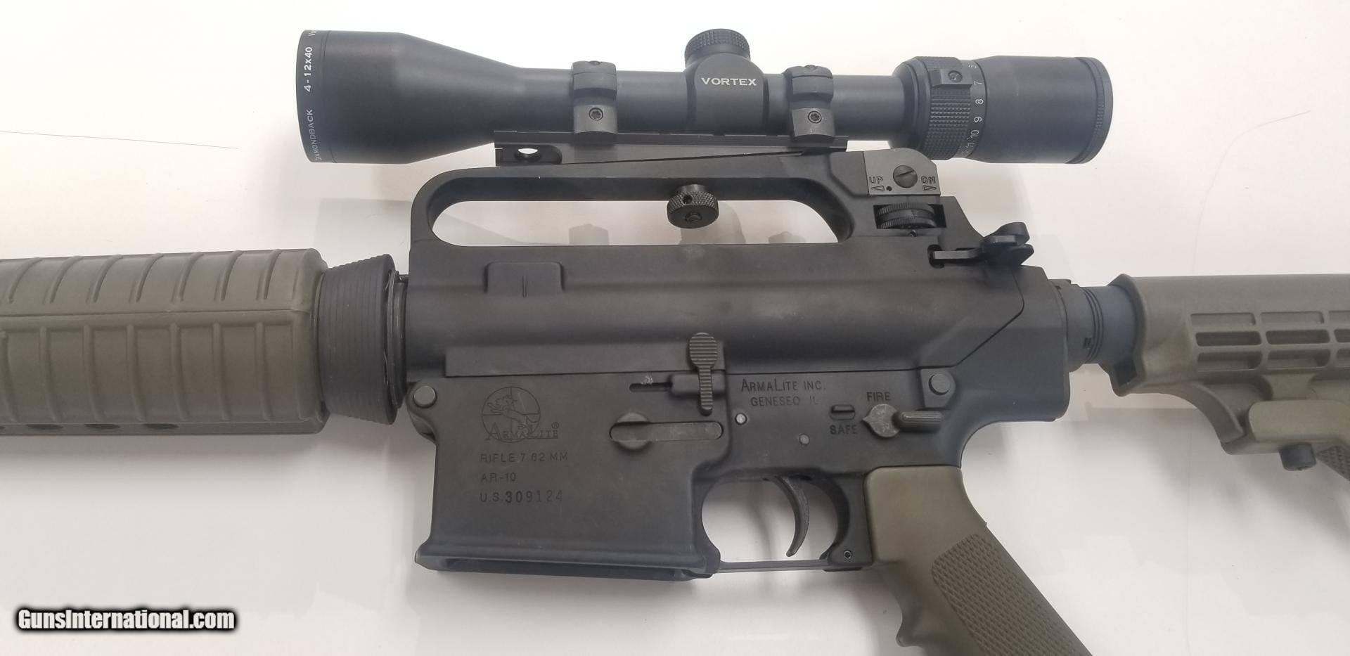 Description: Guns Listing ID: 642974 Armalite AR-10 308 Win, 16\" Blued Barrel, OD Green Furniture, Vortex 4-12 Scope, Fixed A2 Carry Handle, 3 Mags, Hard Case SOLD Manufacturer: ARMALITE Model: AR-10 Caliber Info: 308 WIN Condition: Used - Non-Certified Barrels: 16 BARREL |