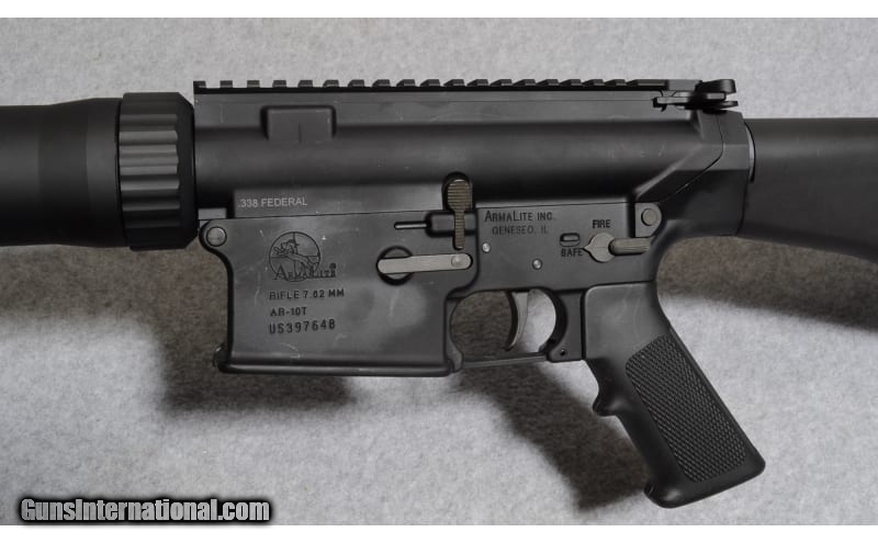 Description: Armalite AR-10(T) rifle is a target / sporter / tactical version of the current AR-10 semi-automatic rifle, which in turn is a further evolution of original AR-10 and AR-15 / M16 rifles. Built by Armalite, AR-10(T) offers rapid second shot option along with good accuracy and great tactical flexibility. Armalite AR-10(T) rifle is gas operated, semi-automatic rifle that uses direct impingement gas system along with rotary bolt locking. Two-part receiver is made from aluminum alloy, furniture and stock are made from impact-resistant polymer. In standard configuration Armalite AR-10(T) is provided with Picatinny type accessory rail on the top receiver, which permits rapid installation of a wide variety of telescope and IR / Night sights. .338 Federal SOLD Chambers: Semi Automatic Metal Condition: Excellent Wood Condition: Black Composite Stock Bore Condition: Excellent Barrels: 22" Stainless Steel 1/10 Triggers: Factory Trigger Stock Dimensions: 14 1/2" LOP Fore End: Round Anodized Aluminum Butt Pad: Factory Rubber Butt Plate Weight: 10 lbs. Sights: Top Rail Item Location: Tulalip, WA |