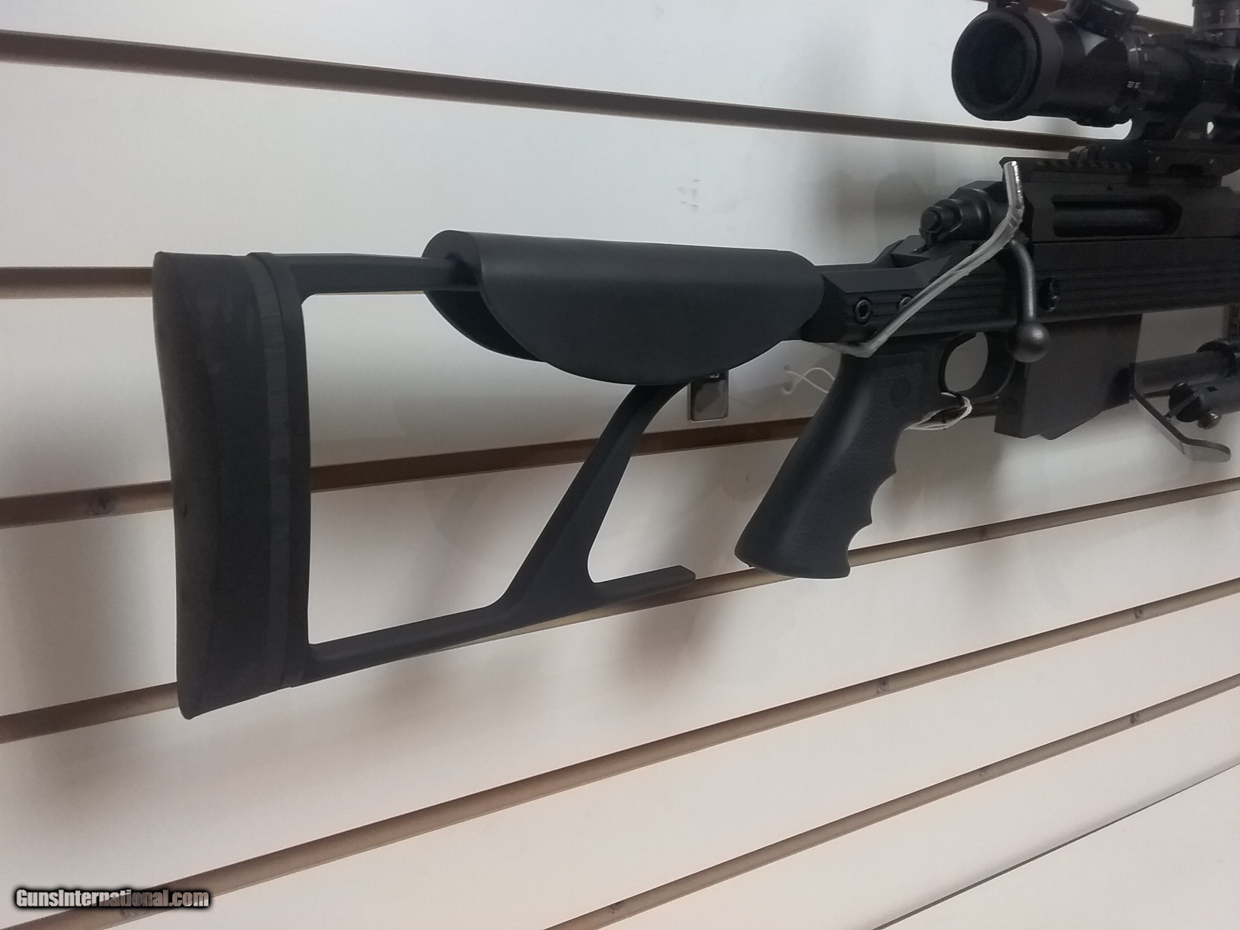 Description: ARMALITE AR-30 .338 Lapua ammo 5-round detachable box magazine . Weight is 12 pounds empty. 26 inch chrome-moly barrel, 6 groove, RH 1:10 inch twist and 48 inches overall length. The receiver is modified octagonal form, drilled and slotted for a scope rail. The bolt is a dual front locking lug. There is a Shilen standard single stage trigger with approximately a 5 LB. pull. Muzzle brake is standard on the .338 Lapua model. The scope rail is mil-standard with boss to engage cross-slot on the receiver. Stock comes in 3 sections, extruded forend, machine grip frame with vertical grip, forged and machined removable buttstock. The buttplate is vertically adjustable, specifically built for heavy calibers. Scope is a Millet 4-16x50 scope Includes 10 box 20 cart each 338 lapua ammo SOLD Serial Number: UB215569 |