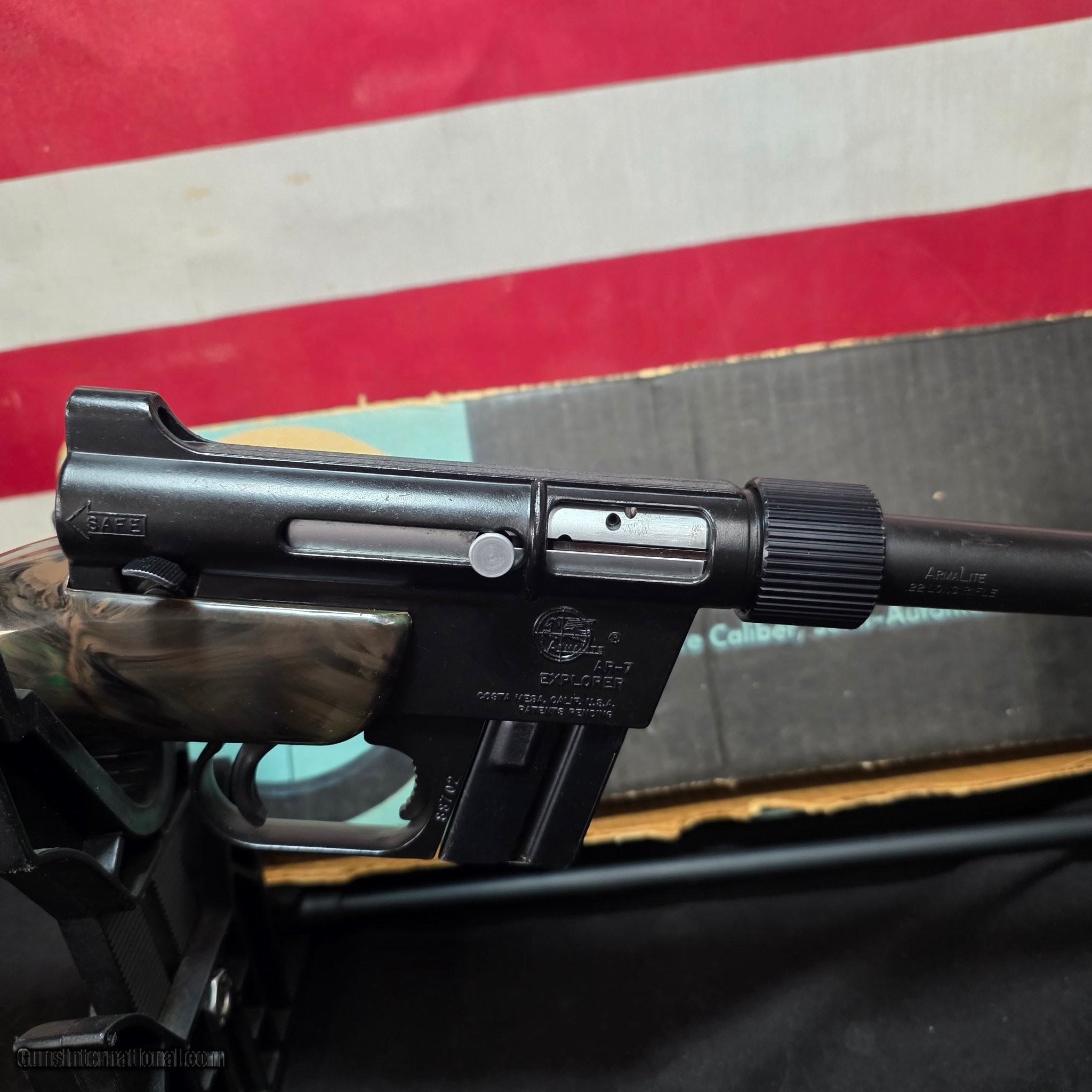 Description: Guns Listing ID: 563259 For sale is an exceptional **ArmaLite AR-7 Explorer**, chambered in .22 LR. This is the original, iconic survival rifle designed by Eugene Stoner, known for its revolutionary ability to be disassembled and stored inside its own waterproof, floating stock. It‚s a perfect choice for pilots, boaters, and anyone who needs a compact, reliable firearm for emergency use or recreation. This rifle has a 16-inch barrel and an 8-round magazine capacity. It is in **excellent, like-new condition**, showing little to no signs of use. The sale includes one magazine and the original factory box. This is a rare find in such a pristine condition. ### Key Features & Specifications * **Model:** ArmaLite AR-7 Explorer * **Caliber:** .22 LR * **Action:** Semi-automatic * **Capacity:** 8 rounds (comes with one magazine) * **Barrel Length:** 16 inches * **Condition:** Excellent * **Included:** Original factory box and one magazine * **Design:** Disassembles to fit inside its waterproof, floating stock. * **Sights:** Aperture rear sight and a drift-adjustable front sight. This ArmaLite AR-7 Explorer is a true collector‚s item and a practical, timeless piece of firearm history. Don‚t miss this opportunity to own a legendary survival rifle in an outstanding state of preservation. --- **Please note:** All local, state, and federal laws apply. Buyer must be of legal age and comply with all regulations regarding firearm transfers. SOLD Manufacturer: ARMALITE Model: AR-7 EXPLORER Caliber Info: .22 LR Condition: Used - Non-Certified Barrels: 16" BARREL Action: SEMI AUTOMATIC Finish: black |
