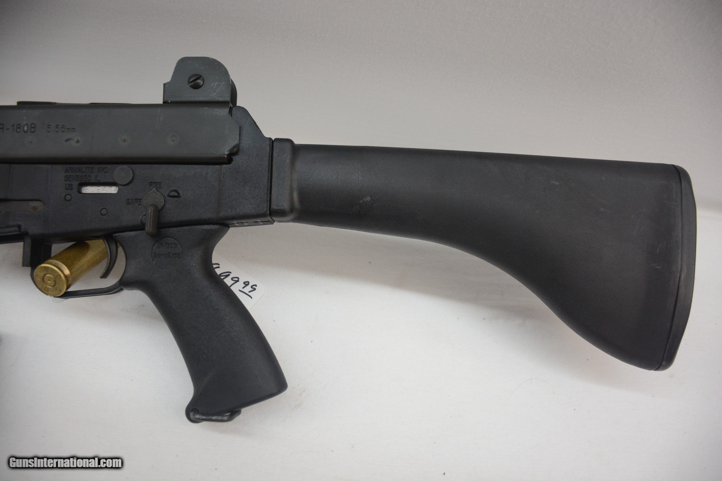 Description: Armalite AR180B is a lightweight option for those who like using AR magazines and triggers but prefer side-charging handles and don't want a buffer tube. This rifle has synthetic furniture, aperture sights, and the barrel has a compensatore built-in. This variation of the AR-18 WILL take AR-15 magazines. This is not your everyday AR and is a great option for the AR collector or anyone who loves 5.46Nato but wants something different. Layaway is available for 20% down with 90 days to finish payment. 4% credit card fee. Be sure to check our other listings for more fine firearms. SOLD |