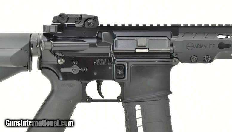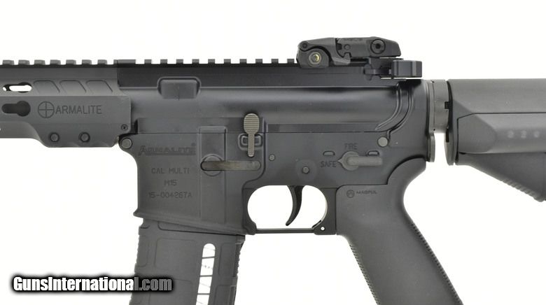 Armalite M15 5.56 NATO caliber rifle. With adjustable Magpul STR stock, Magpul “+” grip, Magpul MBUS flip-up front and read sights, Radian charging handle and muzzle brake. Come with box and magazine. New.