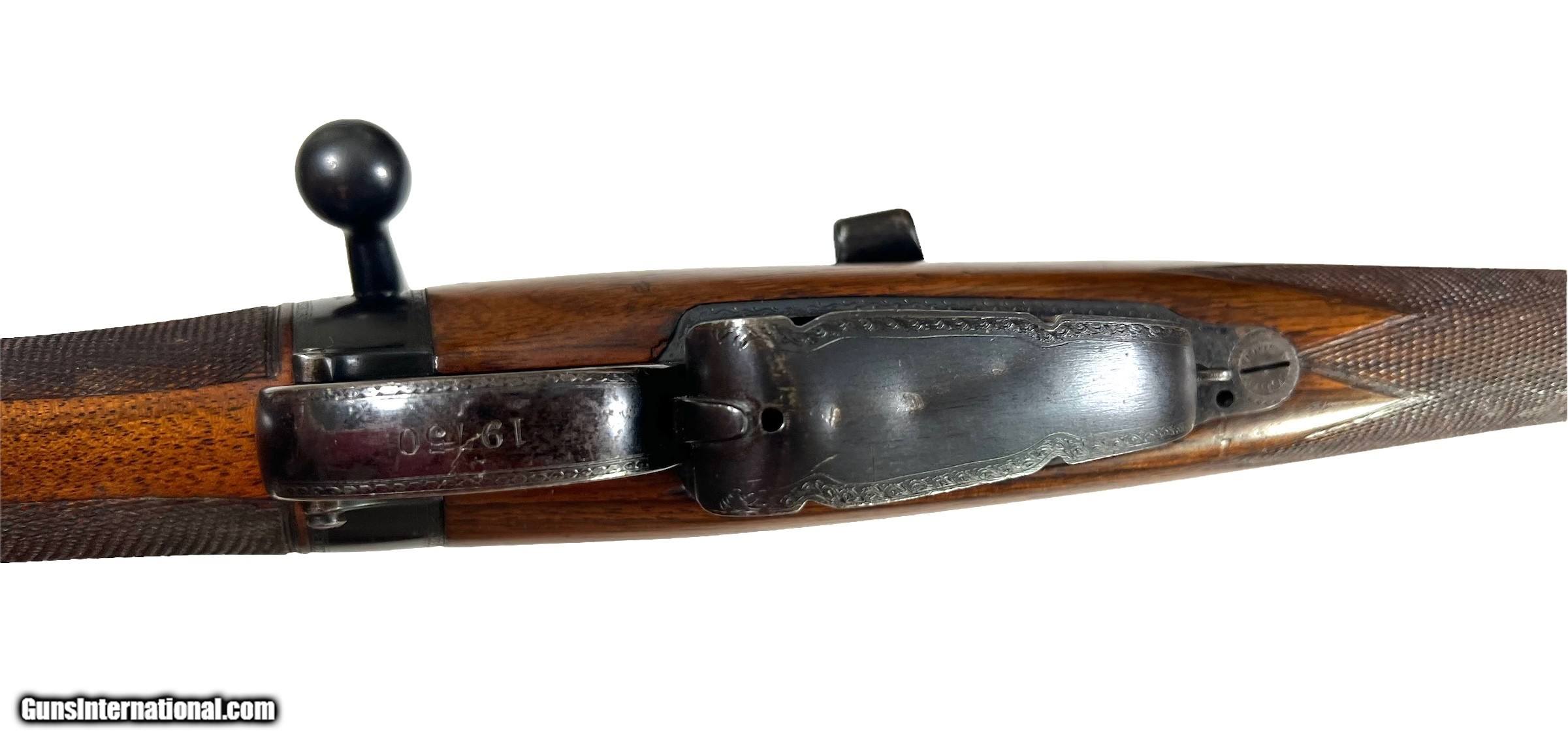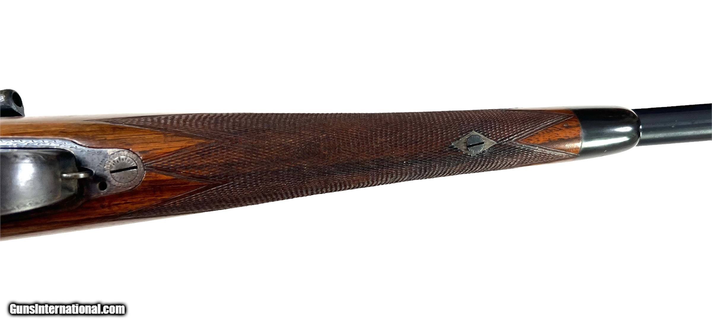Description: Army Navy CSL lee speed sporting rifle 303 British 24"nitro proof barrel with platinum lined express sights and ramp front sight LOP 14 1/2 7lbs 3oz Original ten round detachable magazine Excellent bore Border engraved action and small parts Excellent original condition Lee speed express rifle with beautiful walnut stock. SOLD Antique: Yes Rifle Caliber: .303 British |