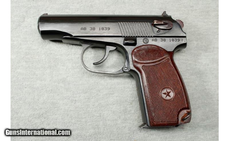 Description: The Makarov pistol or PM is a Soviet semi-automatic pistol. It became the Soviet Union's standard military side arm in 1951. As the new standard issue sidearm of the USSR, the PM was issued to non-commissioned officers, police, special forces, and tank and air crews. It remained in wide front-line service with Soviet military and police until and beyond the end of the USSR in 1991. Variants of the pistol remain in production in Russia, China, and Bulgaria. This example is still in great shape and comes with three magazines. 9x18 Makarov SOLD Metal Condition: good Bore Condition: bright Barrels: 3.5" barrel Weight: 1 lb 8 oz Sights: factory sights Item Location: La Vista, NE |