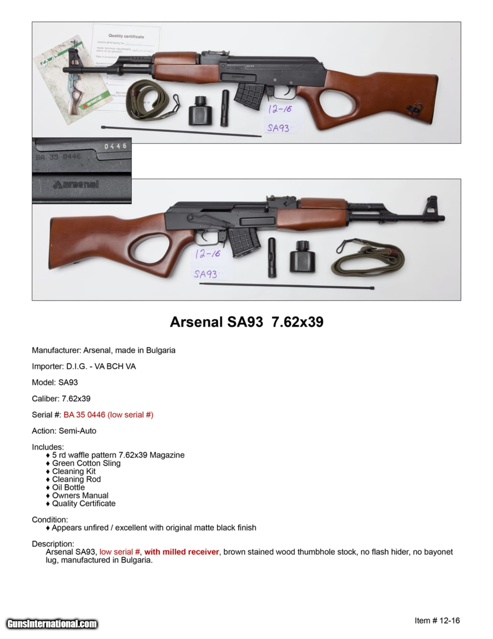Description: Arsenal SA93 7.62x39 - Used SOLD |
