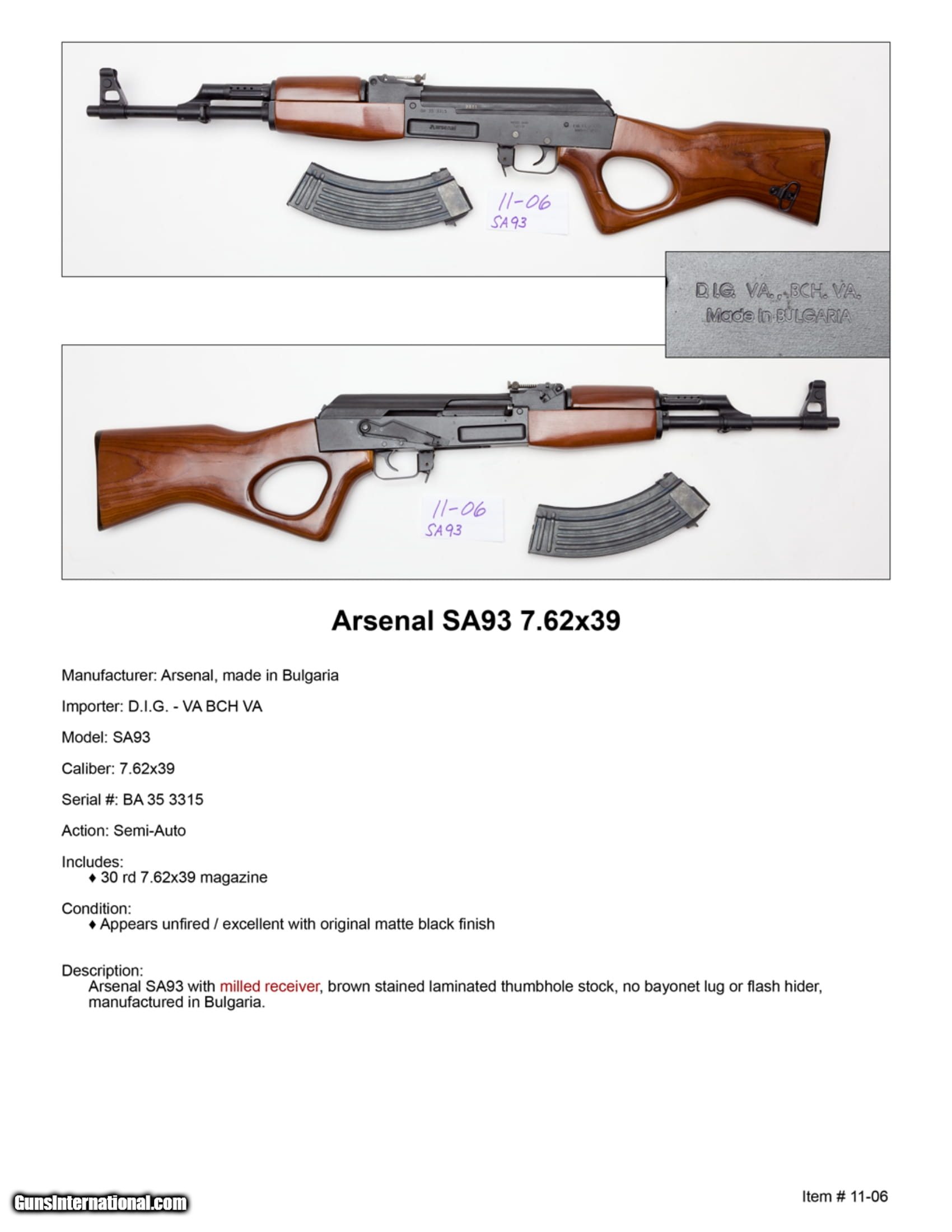 Description: Arsenal SA93 7.62x39 - Used SOLD |
