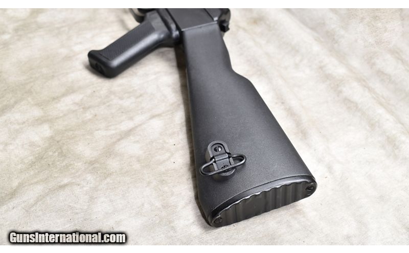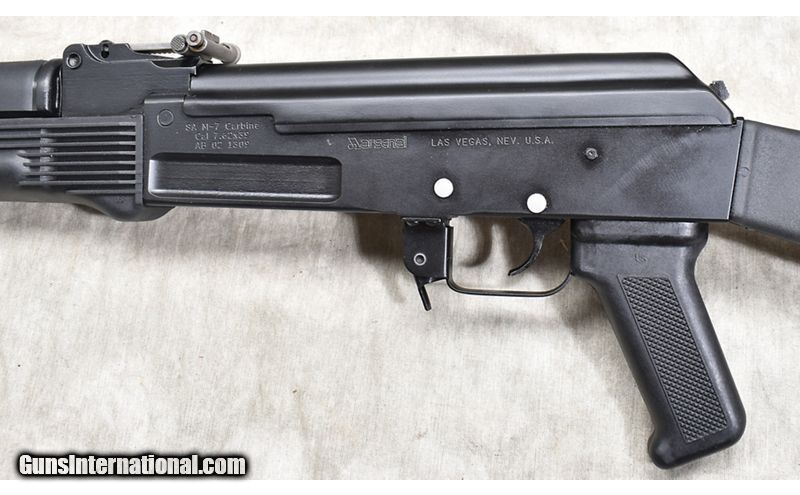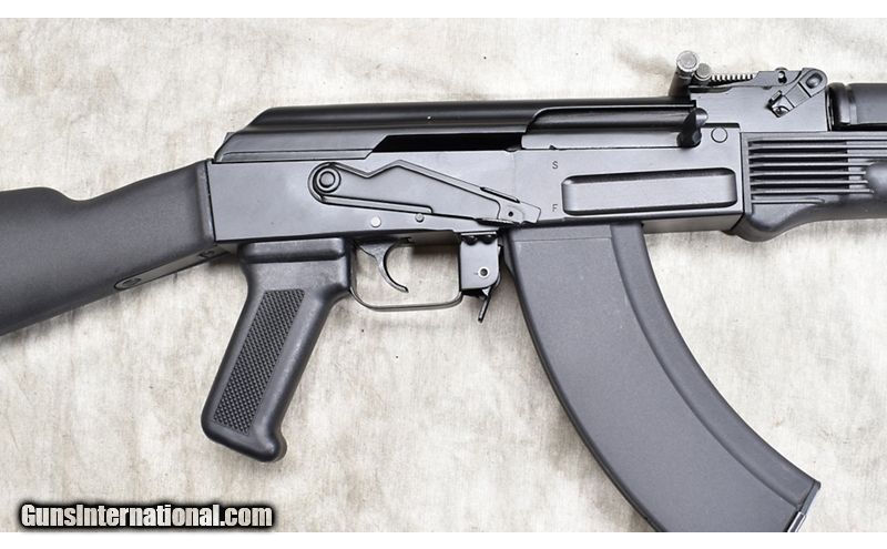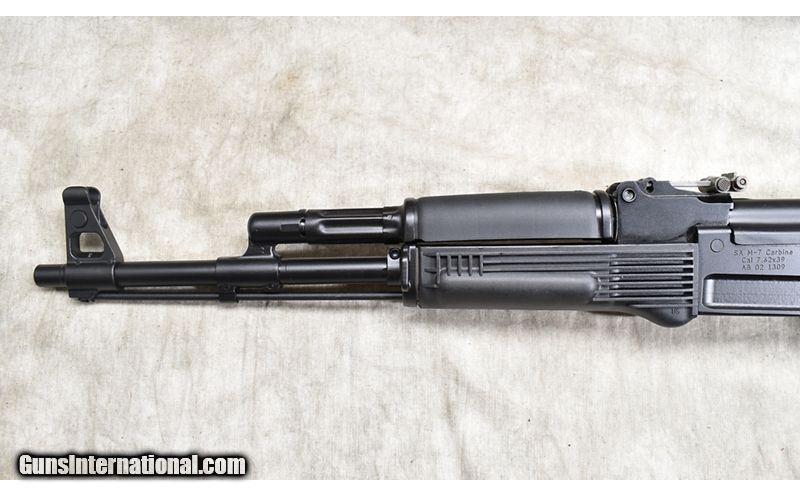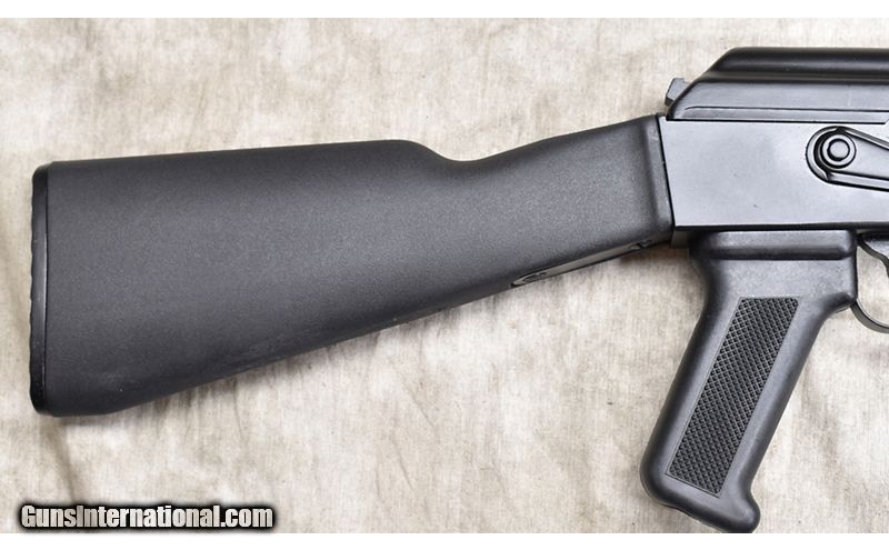 Description: One of the better AK-47 clones with a forged and milled receiver. Known for their accuracy, this one is like new with little evidence of use. 7.62x39mm SOLD Chambers: 30-round mag Metal Condition: Excellent. Wood Condition: Excellent. Bore Condition: Shiny and bright. Barrels: 16-3/8 inch Triggers: Factory trigger. Stock Dimensions: 12-1/2 inch LOP. Fore End: Black plastic with heat shield. Butt Pad: Black plastic. Weight: 7 lb - 13 oz Sights: Post and ladder style notch Item Location: Rogers |