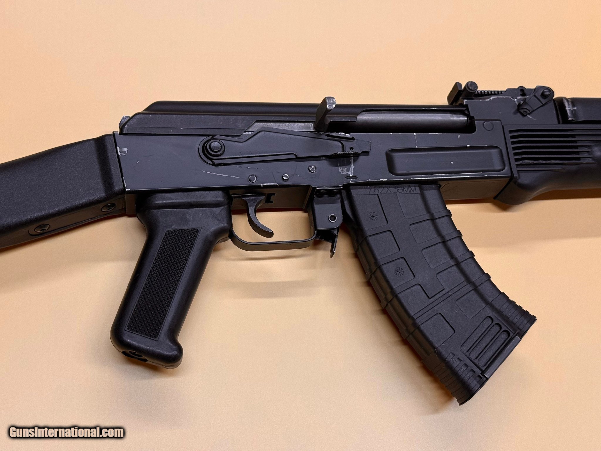 Description: Guns Listing ID: 574438 Arsenal SAM-7 — 7.62×39, 16\" barrel, polymer stock and handguard. One 30-round magazine included. Details & specs Manufacturer: Arsenal — SAM-7 AK-style semi-auto Caliber: 7.62×39 mm Barrel length: 16 inches Stock / furniture: Polymer stock and polymer handguard Sights: Standard AK iron sights (adjustable) Action: Semi-automatic Magazines included: 1 (30 rounds) Finish: Black parkerized / standard Arsenal finish Condition: Good (cosmetic wear) — mechanically sound and shoots reliably Condition notes This rifle is in good mechanical condition. It has been regularly cleaned and functions reliably — safe, smooth semi-auto operation. Bore is clean with good rifling (no pitting). There is light cosmetic wear: some scuffs and finish wear on the receiver and polymer furniture consistent with normal use. SOLD Manufacturer: ARSENAL Model: SAM-7 Caliber Info: 7.62X39MM Condition: Used - Non-Certified Barrels: 16" BARREL Action: SEMI AUTOMATIC Finish: black |