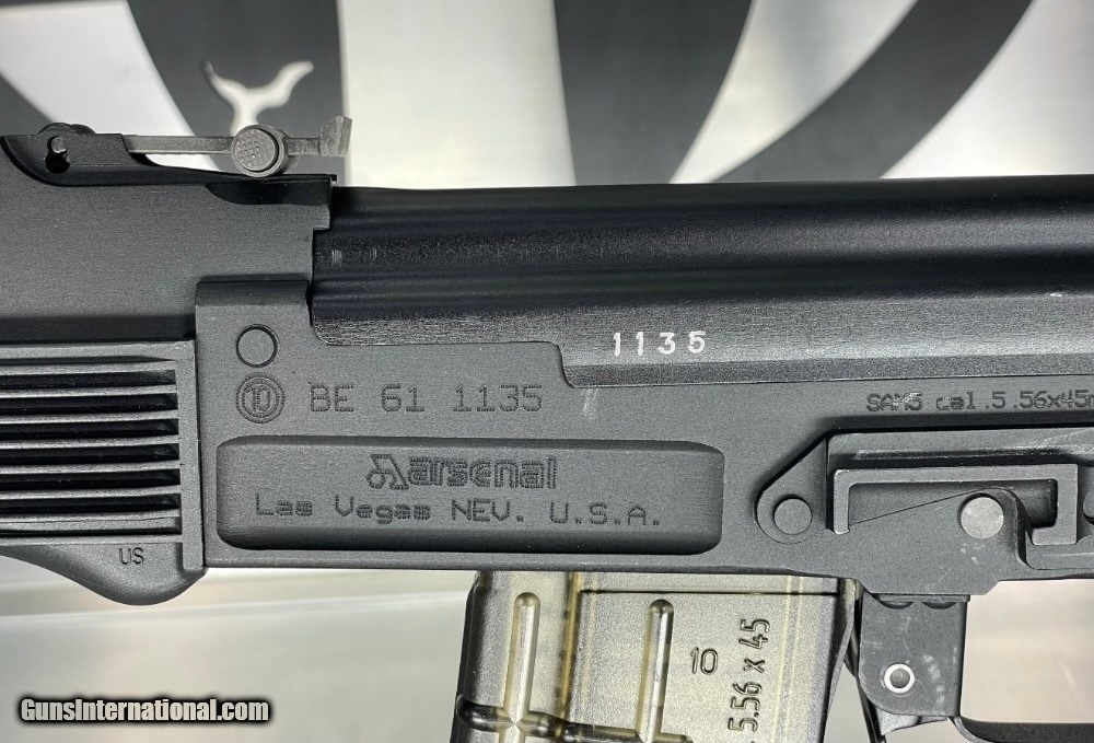 Description: Guns Listing ID: 1100694 Condition: Very Good Overall, Shiny Bore With Strong Rifling. The Rifle Has Some Minor Handling Marks Which are Mostly on The High Points. Included: One (20 Round) Magazine, Sling, Oil bottle, Cleaning Kit & Instruction Manual. Product Description: Arsenal SAM5 5.56x45mm AK47 rifle, milled and forged receiver, chrome lined hammer forged barrel, 14x1mm left-hand muzzle threads, AK-351 muzzle brake, FIME Enhanced Fire Control Group, black polymer furniture, intermediate length buttstock & stainless steel heat shield. SOLD Manufacturer: ARSENAL Model: SAM5, 5.56x45mm AK47 Rifle,16.34" Barrel, Matte Black Furniture, FIME Enhanced Fire Control Gr Caliber Info: 5.56X45MM NATO Condition: Used - Non-Certified Barrels: 16.34 BARREL Finish: BLACK |