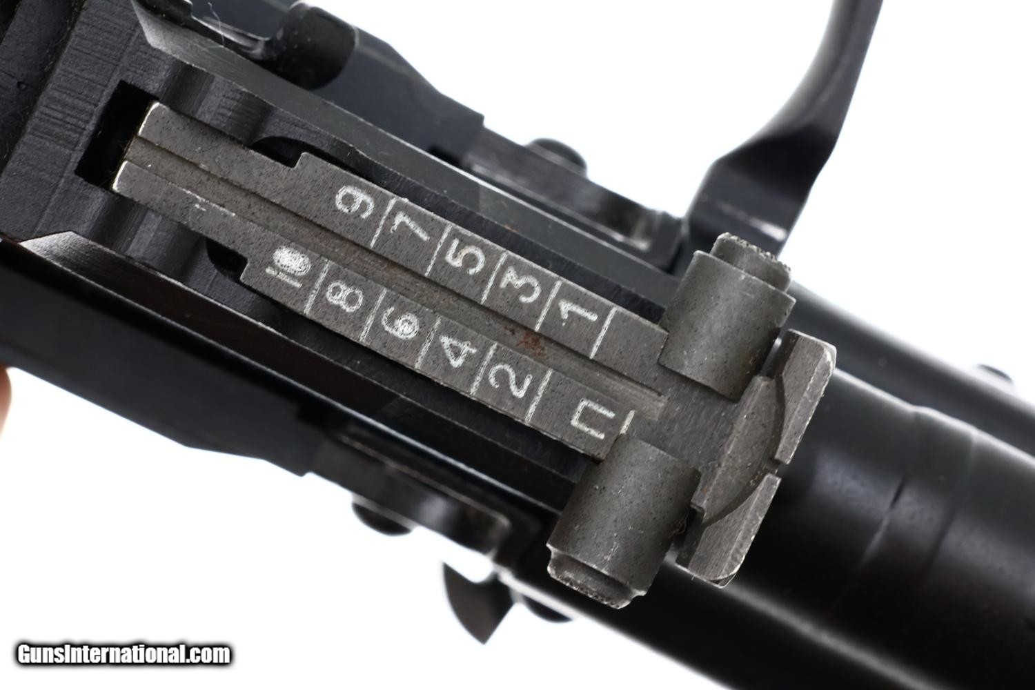 The rifle and associated bayonet/scabbard are nearly new with just a few faint handling marks. Mirror bore. Correct manual mechanics. Similar condition bayonet and scabbard.