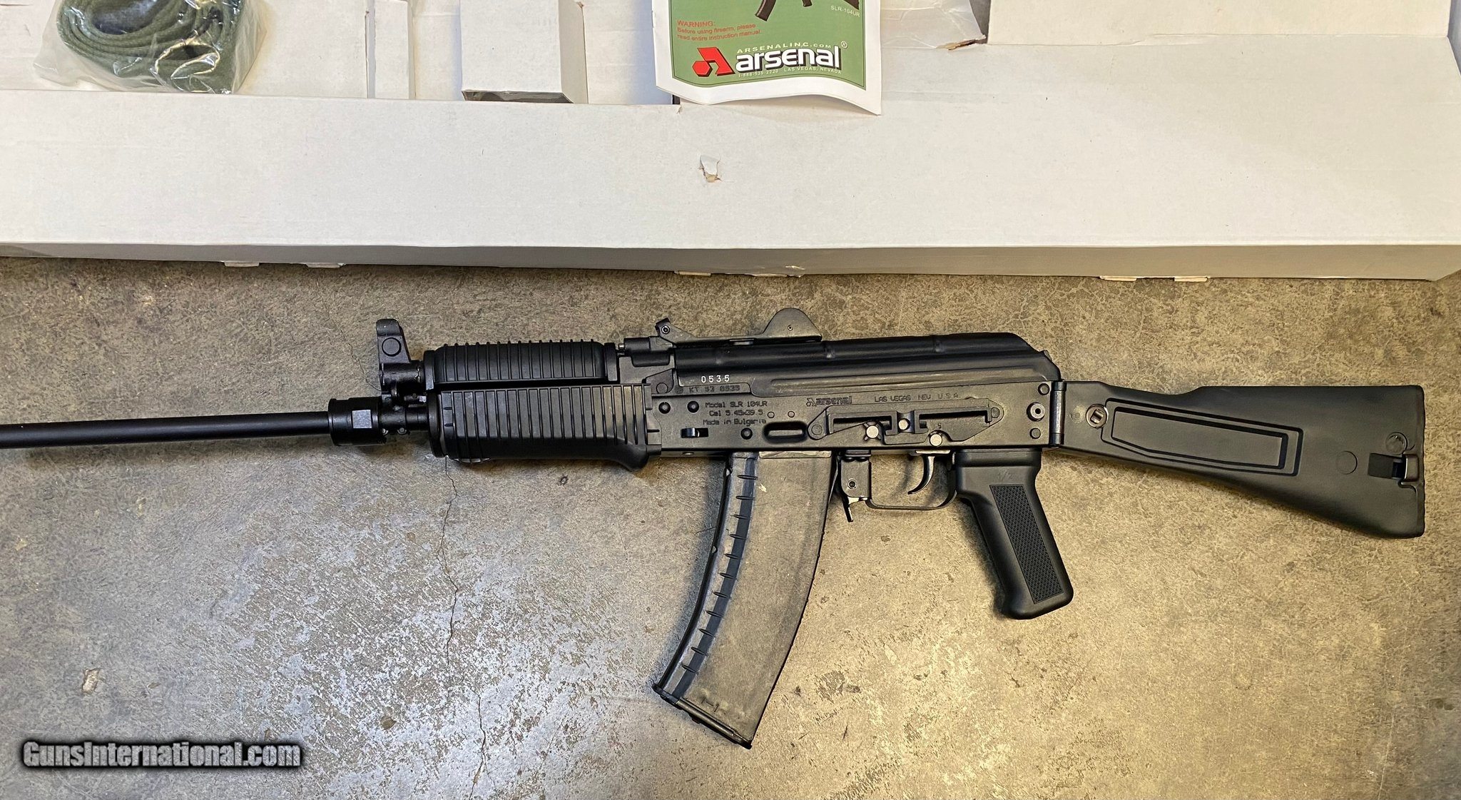 Description: Guns Listing ID: 1369465 In original box. Serial number matches. Flat side 30round circle 21 magazine, cleaning kit, sling, oil bottle. Very good finish. No scratches. Shot only a few times. SOLD Manufacturer: ARSENAL Model: SLR 104UR Caliber Info: 5.45X39MM Condition: Used - Non-Certified Barrels: 16 BARREL Finish: MATTE BLACK |