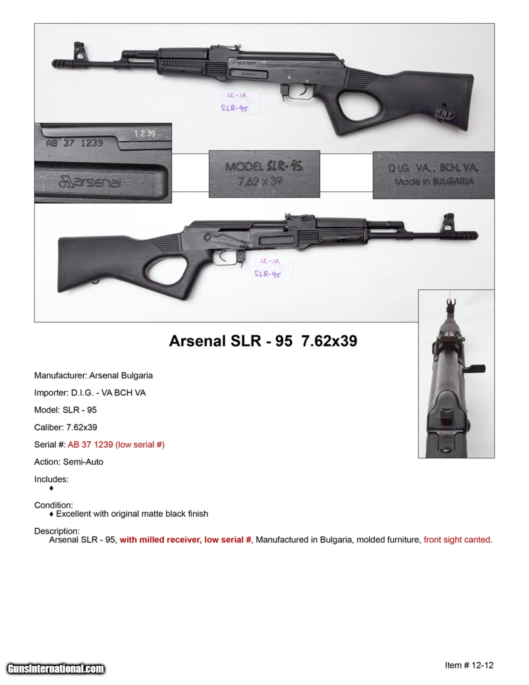 Description: Arsenal SLR – 95 7.62x39 Bulgarian Low Serial Milled - Used SOLD |