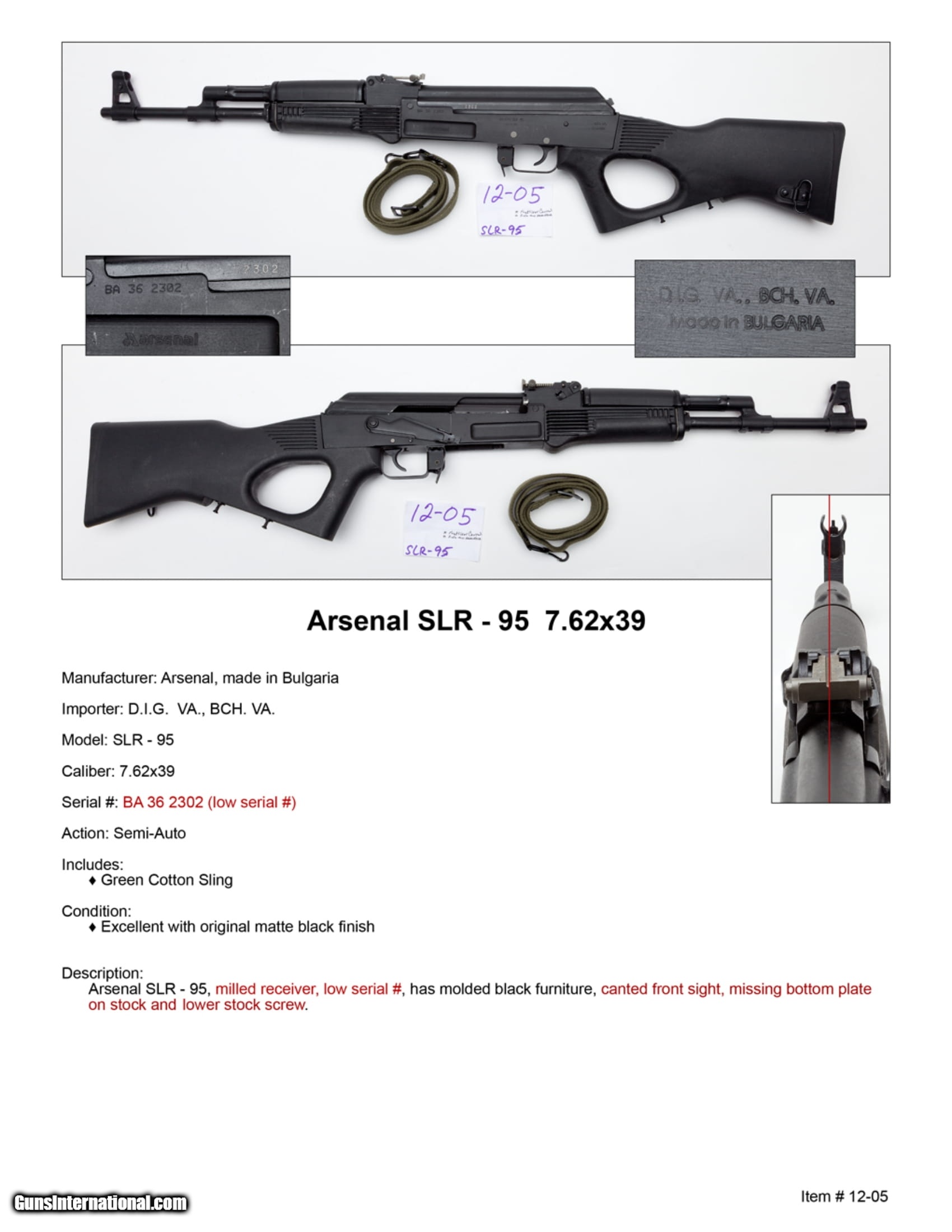 Description: Arsenal SLR – 95 7.62x39 Bulgarian Low Serial Milled - Used SOLD |