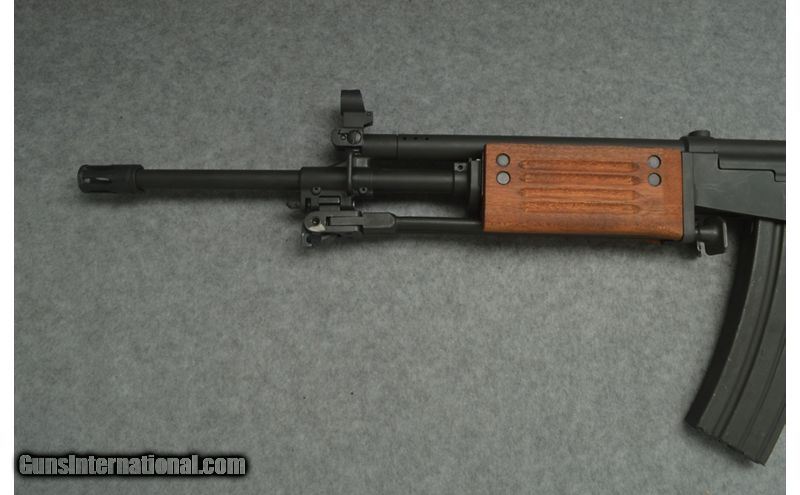 Description: American tactical Galeo. Chambered in 5.56 Nato. Overall condition is very good, has folding stock and Bi-pod. Comes with 8, 30 round mags and hard case. Serial number is # GAT00756 5.56x45mm NATO SOLD Chambers: 30 Metal Condition: V good Wood Condition: V good Bore Condition: V good Barrels: 16 Stock Dimensions: Folding Fore End: Wood Butt Pad: Rubber Weight: 9 lb 8 oz Sights: Open Item Location: Sun Prairie, WI |