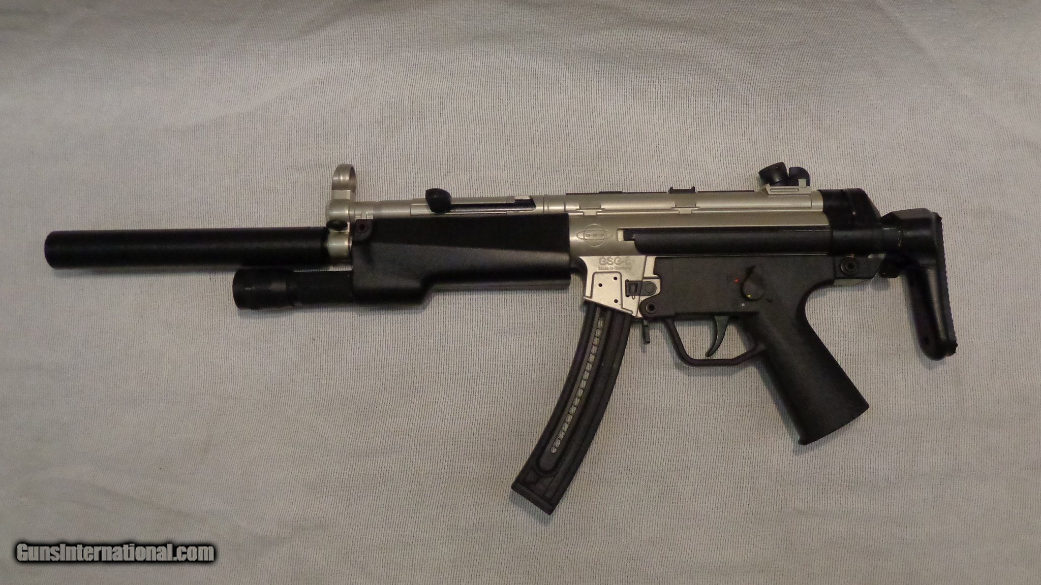 Description: Guns Listing ID: 1303938 This GSG-5 is in good condition overall showing a few dings and scratches. The buttstock does need some work. It will manually lock in the open and closed position but it will come off the gun if pulled all the way back in the unlocked position. The flashlight works but will not be shipped with a battery to comply with UPS requirements. One magazine is included. SOLD Manufacturer: ATI Model: GSG-5 1st Anniversary Caliber Info: .22 LR Condition: Used - Non-Certified Barrels: 16 BARREL Finish: TWO-TONE |