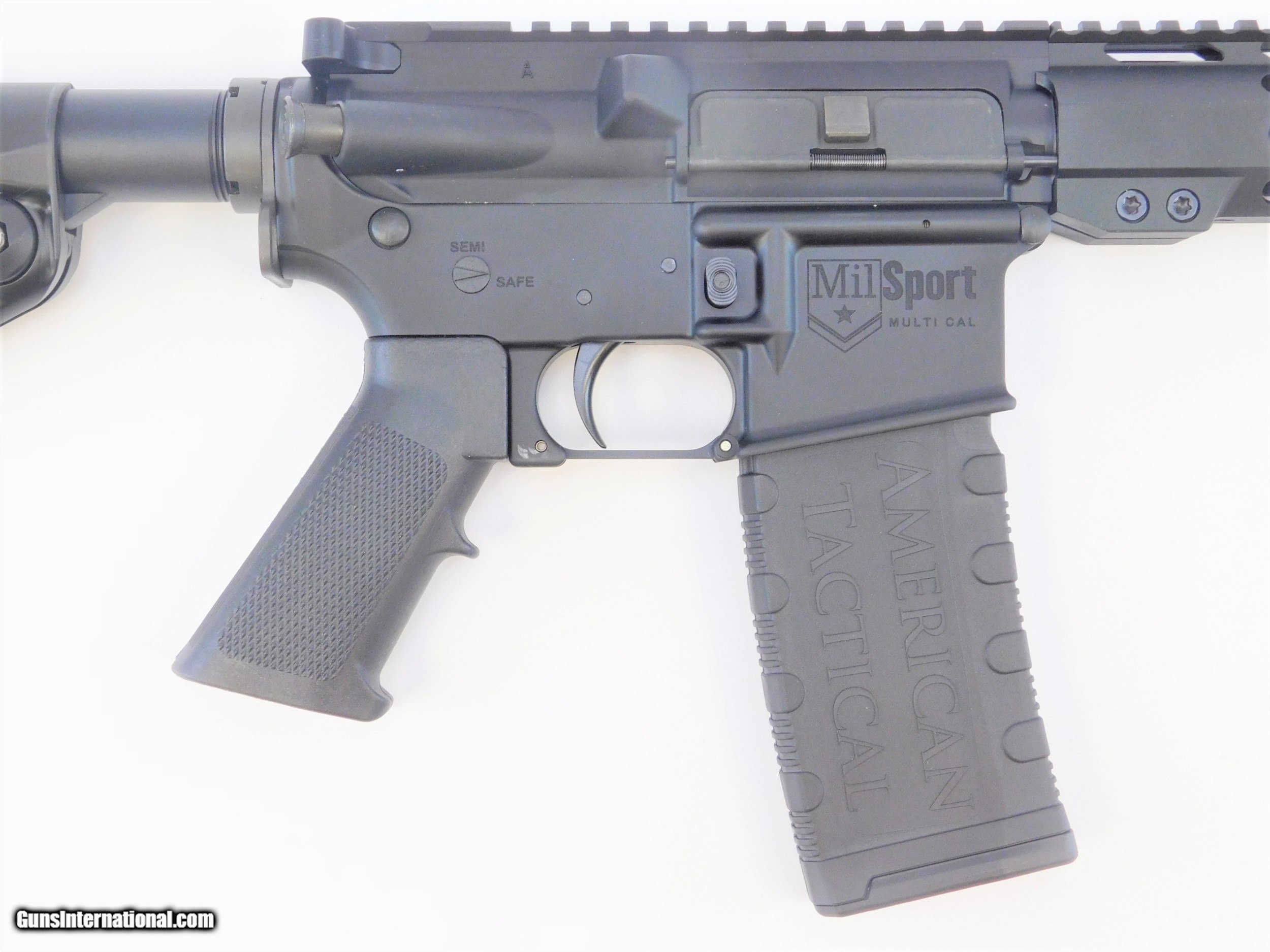 Description: BRAND NEW IN THE BOX AND READY TO SHIP! BUY IT NOW!! Manufacturer: American Tactical Imports Model: ATI RIA Mil-Sport AR-15 SKU: ATIG15MS556MM Caliber: 5.56 NATO Capacity: 5 Rounds Barrel Length: 16" Flash Hider: 1/2x28 Finish: Parkerized, Black Twist Rate: 1:7" Upper & Lower Receiver: Aluminum Forged 15" Freefloat Aluminum Key-Mod Handguard Collapsible Stock Overall Length: 37" American Tactical's AR-15 style 450 Bushmaster Rifle is affordable and optics ready and built for today's modern hunter. Modern Sporting Rifles are fast becoming the preferred hunting rifle in the fields across the world. This Bushmaster Hunting Rifle features a 16" barrel and a Keymod aluminum free float handguard. This handguard readily accepts KeyMod accessories. The picatinny mounting platform is designed to fit your preferred optic. We also offer a another version that features a Luth-AR Stock with a raised cheek rest. Gas operated AR platform rifles offer less recoil and a lighter weight than traditional hunting rifles making it ideal for your next hunting trip. KNOW YOUR LOCAL AND STATE LAWS!! ORDERS WILL ONLY BE ACCEPTED FROM US RESIDENTS OF THE LOWER 48 STATES, ALASKA AND HAWAII. OUR FFL CLASS DOES NOT ALLOW FOR THE EXPORT OF FIREARMS, THEREFORE WE CANNOT SHIP OUT OF THE US. IF YOU ARE INTERESTED IN PURCHASING THIS ITEM, PLEASE COMPLETE YOUR ORDER BY REFERRING TO THE "SELLER'S INFORMATION" ABOVE. SOLD |