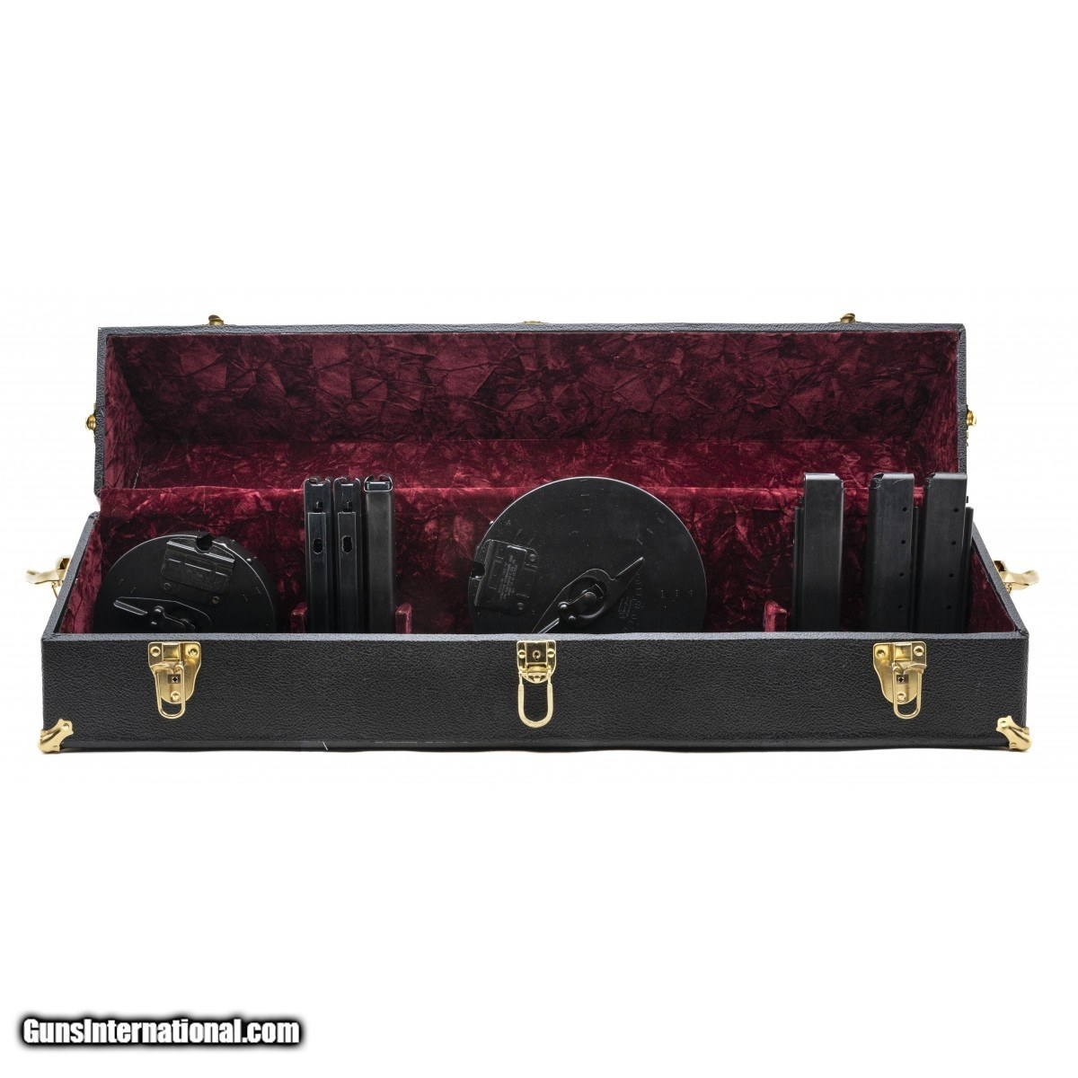 SN:KM6515. Modern Production, .45 ACP with a 18.5"" barrel. Bore is in excellent condition. Semi-auto carbine with wood furniture, adjustable rear sights, manual safety and detachable magazine. Overall condition is excellent. Comes with factory case, display velvet hardcase, magazine pouch, 10 30rd stick magazines, 1 50rd drum and 1 100rd drum. (Consignment)