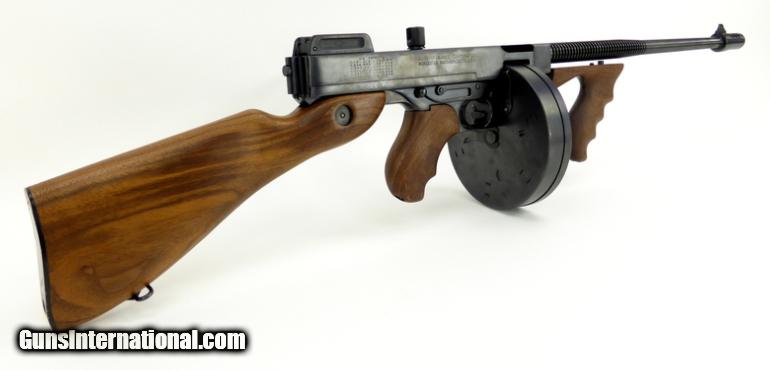 Description: Auto Ordnance 1927-A1 .45 ACP caliber rifle. Deluxe tommy gun with 50 round drum and 30 round stick magazine. Excellent condition with case. SOLD |