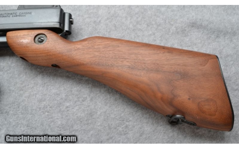Description: SOLD Caliber Info: .45 ACP Metal Condition: Factory finish with light handling marks, near new Wood Condition: Factory finish with light handling marks, near new Bore Condition: Very good with sharp lands Barrels: 18 Stock Dimensions: 17" LOP Fore End: Pistol grip Weight: 12 lb. 10 oz. Sights: Factory leaf and graduated ladder rear sight Extras: 50 round drum and Violin case. Item Location: Springfield, OR |