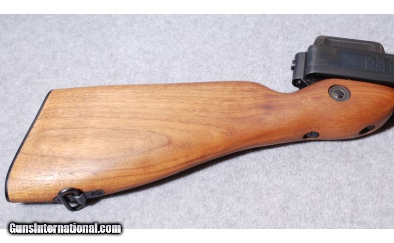 Description: Preowned, unfired. Like new in hard case. SOLD Caliber Info: .45 Auto Metal Condition: Like New Wood Condition: Like New Bore Condition: Like New Barrels: 16 Triggers: Factory. Stock: Wood Stock Dimensions: 17" Lop Fore End: Wood Butt Pad: Hard plastic Weight: 12 LBS. Sights: Blade front / sloted rear Extras: Hard case, 30round stick, 50 round drum Item Location: Rapid City, SD |