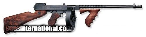 Description: Guns Listing ID: 418602 The Auto-Ordnance Thompson 1927A1 is a semi-automatic rifle chambered in 45 ACP that comes standard with a 20-round stick magazine but it can accept stick or drum magazines of much higher capacities. Including the compensator available barrel lengths are 16.5 and 18 and they are accompanied by either walnut or black synthetic stocks fore grips and pistol grips. The Thompson 1927A1 includes a blade front sight and an adjustable rear sight. A sling mount rounds out the Thompson 1927A1s features. Details Action Semi Auto - Caliber .45 ACP - Capacity 20 plus 1 - Finish Black - StockGrip Fixed Walnut - Sights BladeAdjustable - Barrel Length 16.5 - Overall Length 41 - Weight 13 lb - All the classic details of the time honored original are reproduced in todays semi-auto Thompson. The frame and receiver are machined from solid steel or aluminum. The wood is genuine American walnut. This .45 caliber carbine features a 16 12 finned barrel compensator and is available with a blued steel receiver or a lighter weight aluminum receiver. This configuration is our most popular model. SOLD Manufacturer: AUTO-ORDNANCE Model: 1927 Caliber Info: .45 ACP Condition: new Barrels: 16.5" barrel |