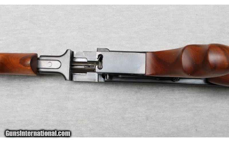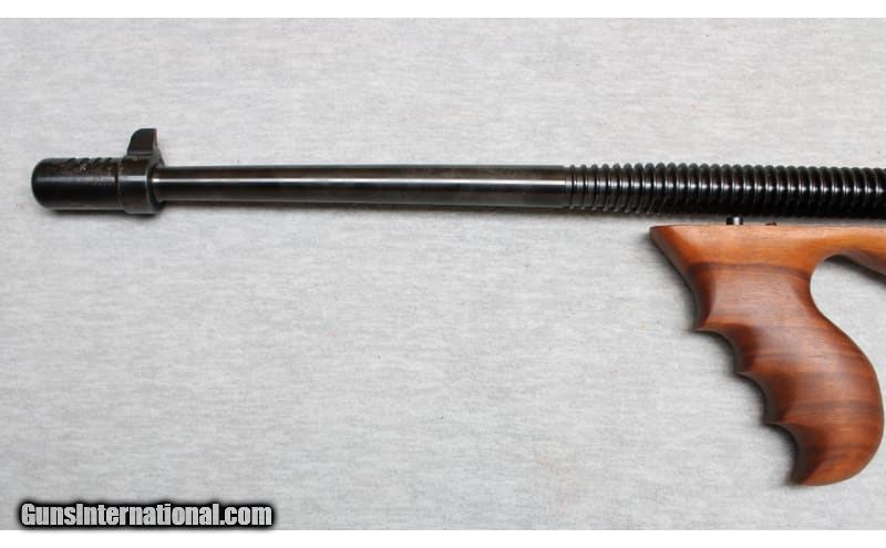 Description: Auto Ordnance Thompson 1927A1 chambered in .45 ACP. The "Chicago Typewriter" has been manufactured for more than 100 years. This Thompson has a pinned Cutts compensator, which lengthens the finned barrel length to 18". It has a blued steel receiver and a blade front and open rear adjustable sight. The fixed stock is crafted in luxurious polished American Walnut and has a vertical foregrip. It has a case and includes two 20 round stick magazines. .45 ACP SOLD Metal Condition: Excellent Wood Condition: Excellent Bore Condition: Bright Barrels: 18.5 Inches Triggers: Factory Stock Dimensions: LOP 17 1/4 Inches Fore End: Walnut pistol grip Butt Pad: Steel pad Sights: "Adjustable ladder rear sight, front blade Item Location: La Vista, NE |